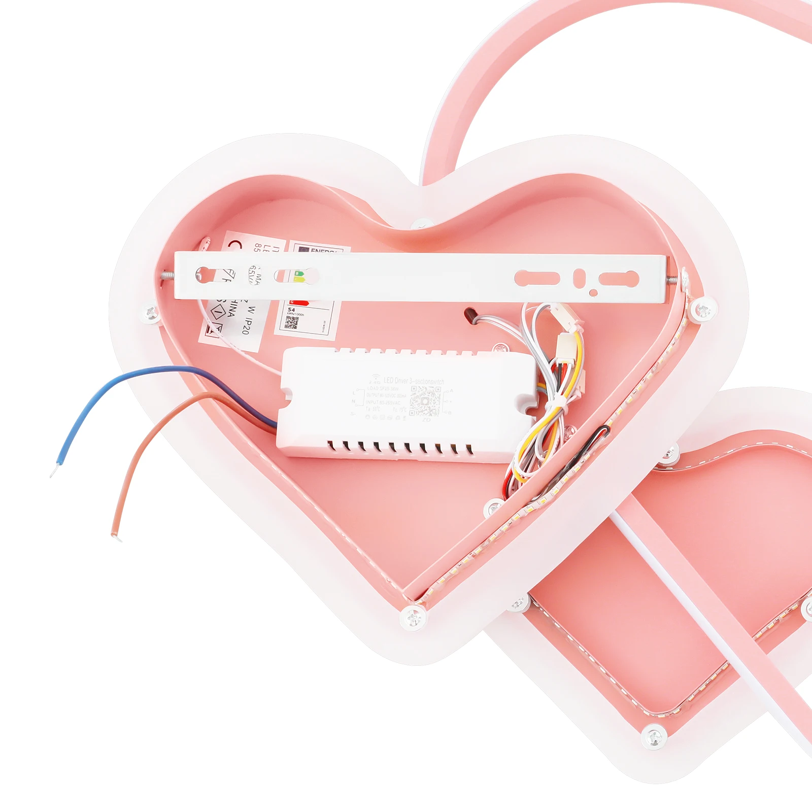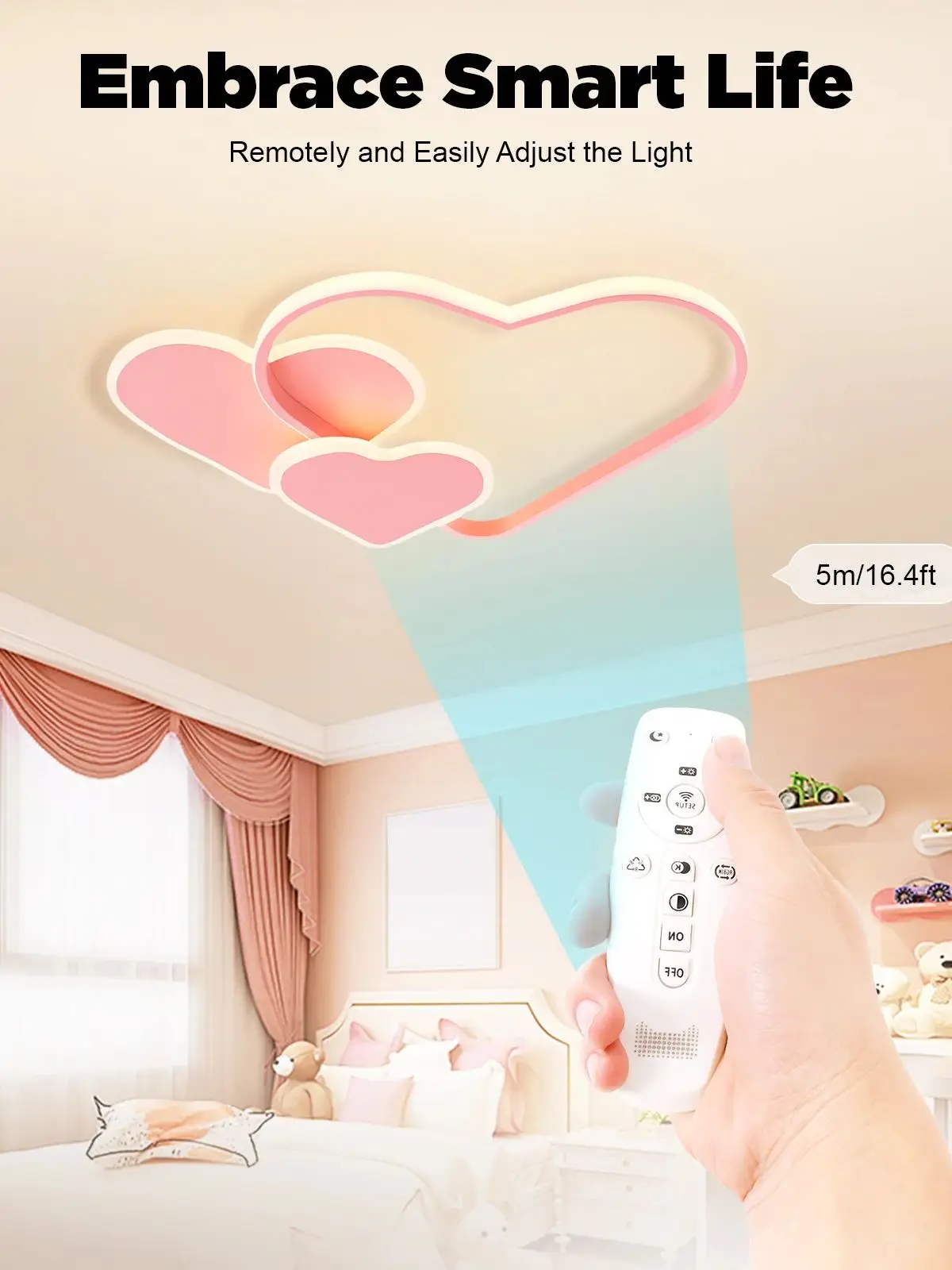 This ceiling lamp adopts a heart-shaped design that is novel, unique, and romantic. The infinitely dimmable light can be adapted to the needs of different scenes, and the intelligent remote control can bring great convenience and a comfortable experience to your daily life. All in all, with its unique design concept, efficient performance, and convenient control, it becomes an ideal choice to enhance the quality of home life, whether for personal use or as a gift, it can show extraordinary taste and care.