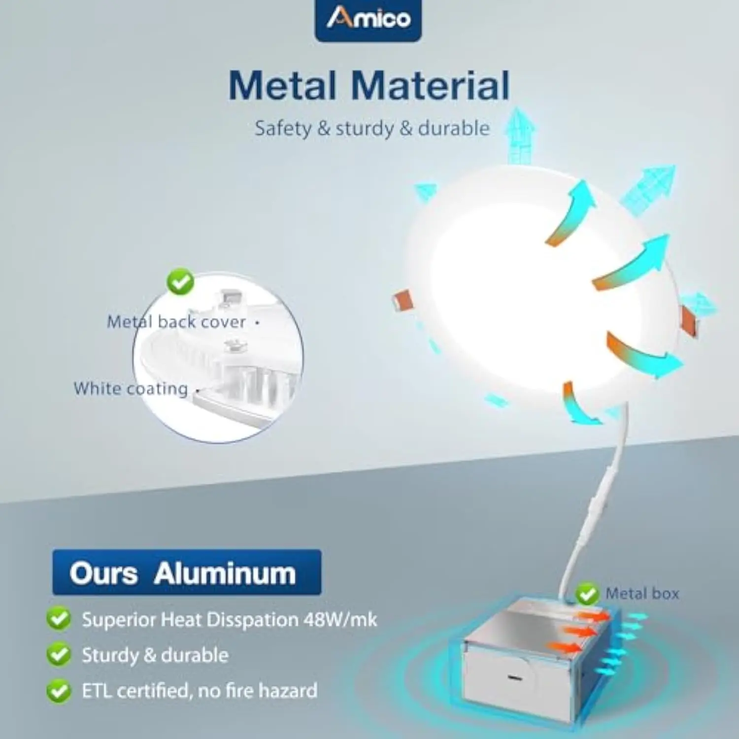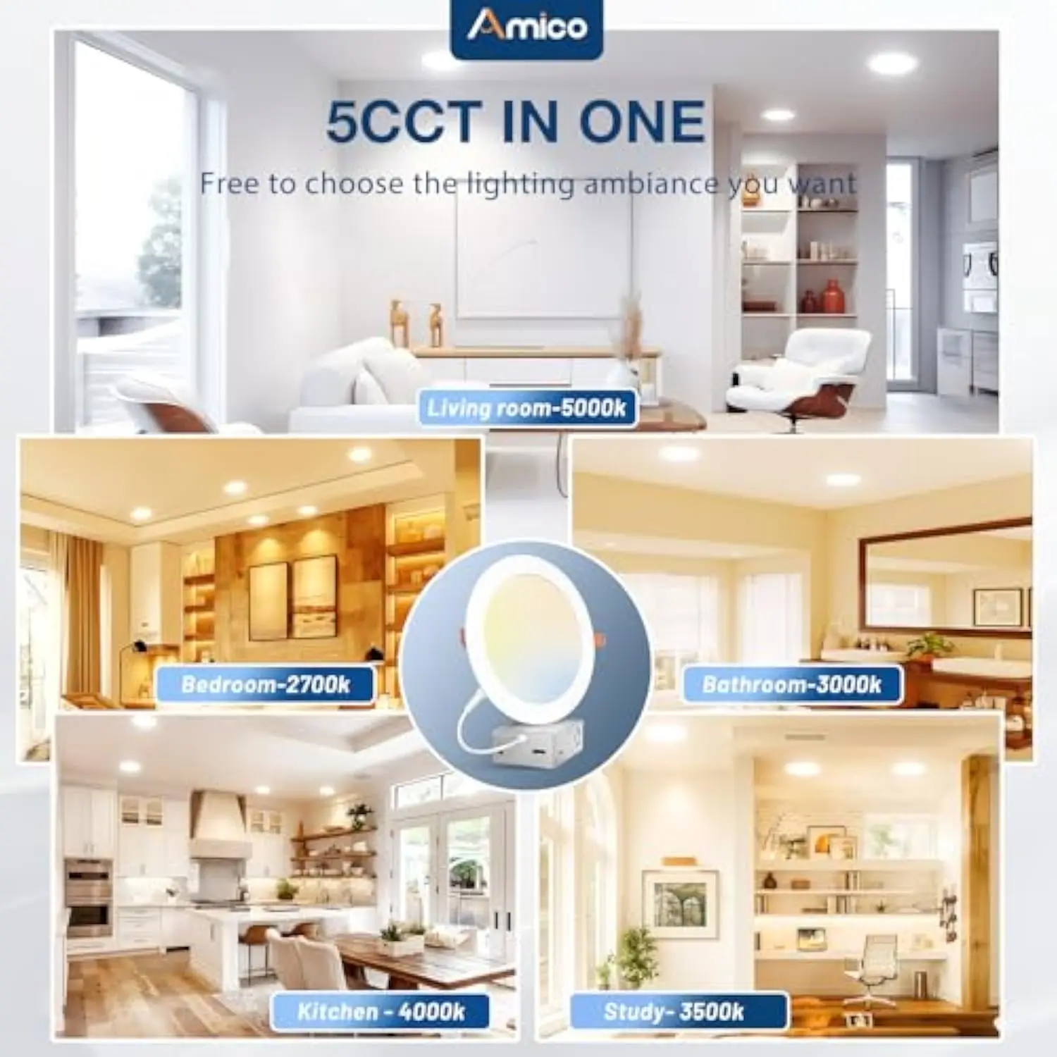 12 Pack 7 Inch 5Cct Ultra-Thin Led Canless Recessed Ceiling Light with Junction Box, 2700K/3000K/3500K/4000K/5000K Selectable12 Pack 7 Inch 5Cct Ultra-Thin Led Canless Recessed Ceiling Light with Junction Box, 2700K/3000K/3500K/4000K/5000K Selectable