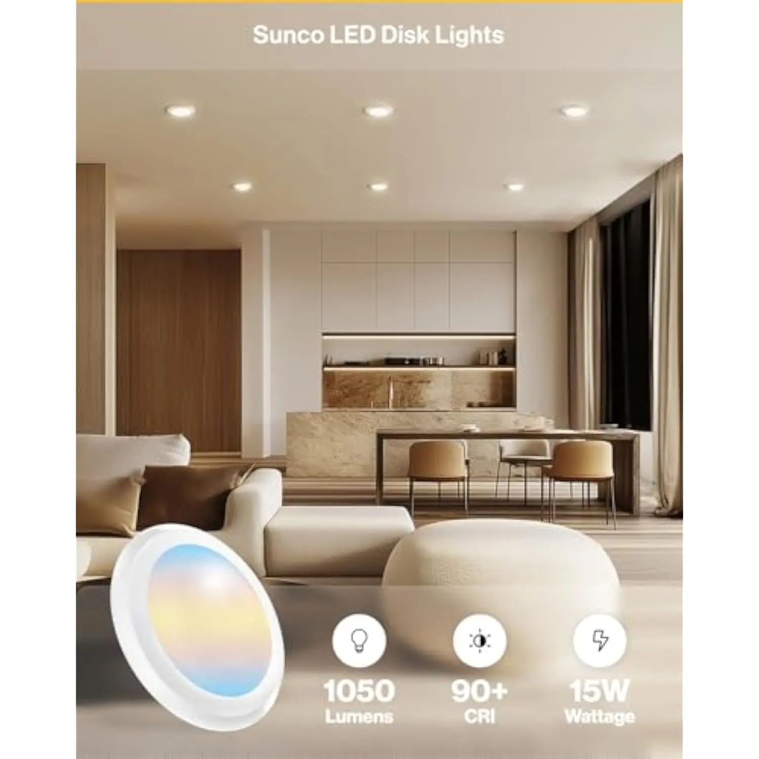 Dimmable – seamless dimming capabilities (10%-100%) fit any mood or decor. Our sleek disk led recessed lights give off sunlight-like quality (cri90+) for true color rendering, ideal applications including bedroom, kitchen, living area, lamps and offices.