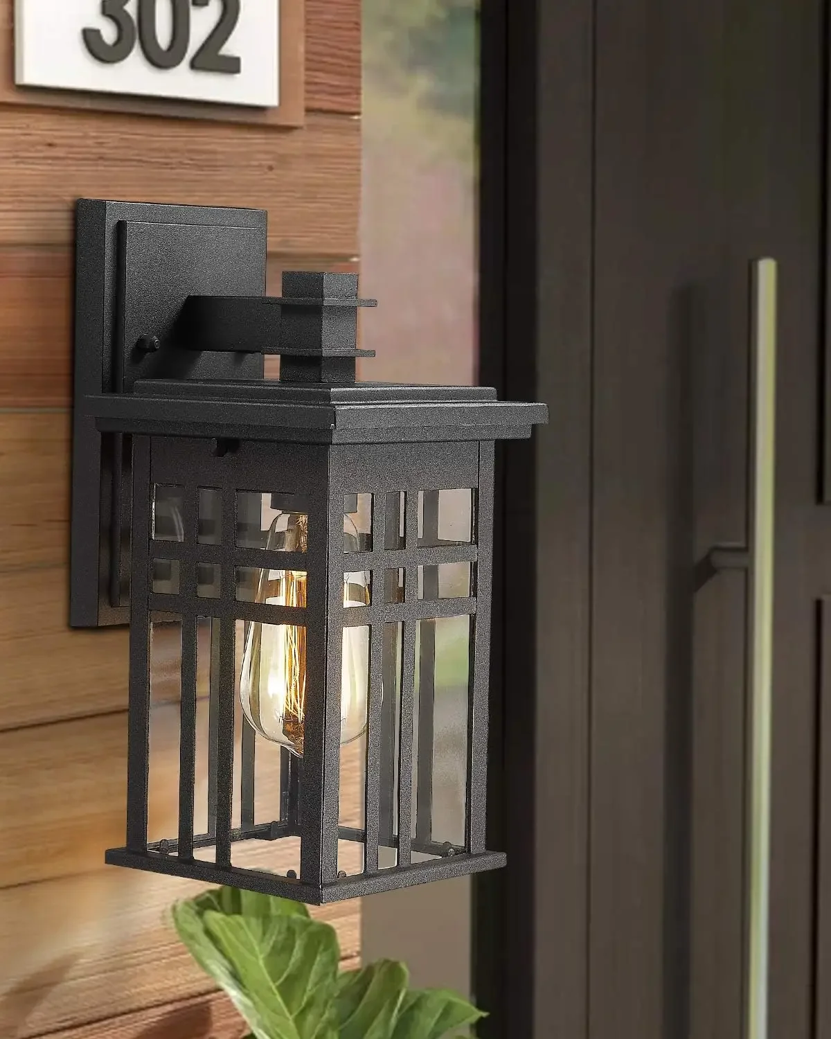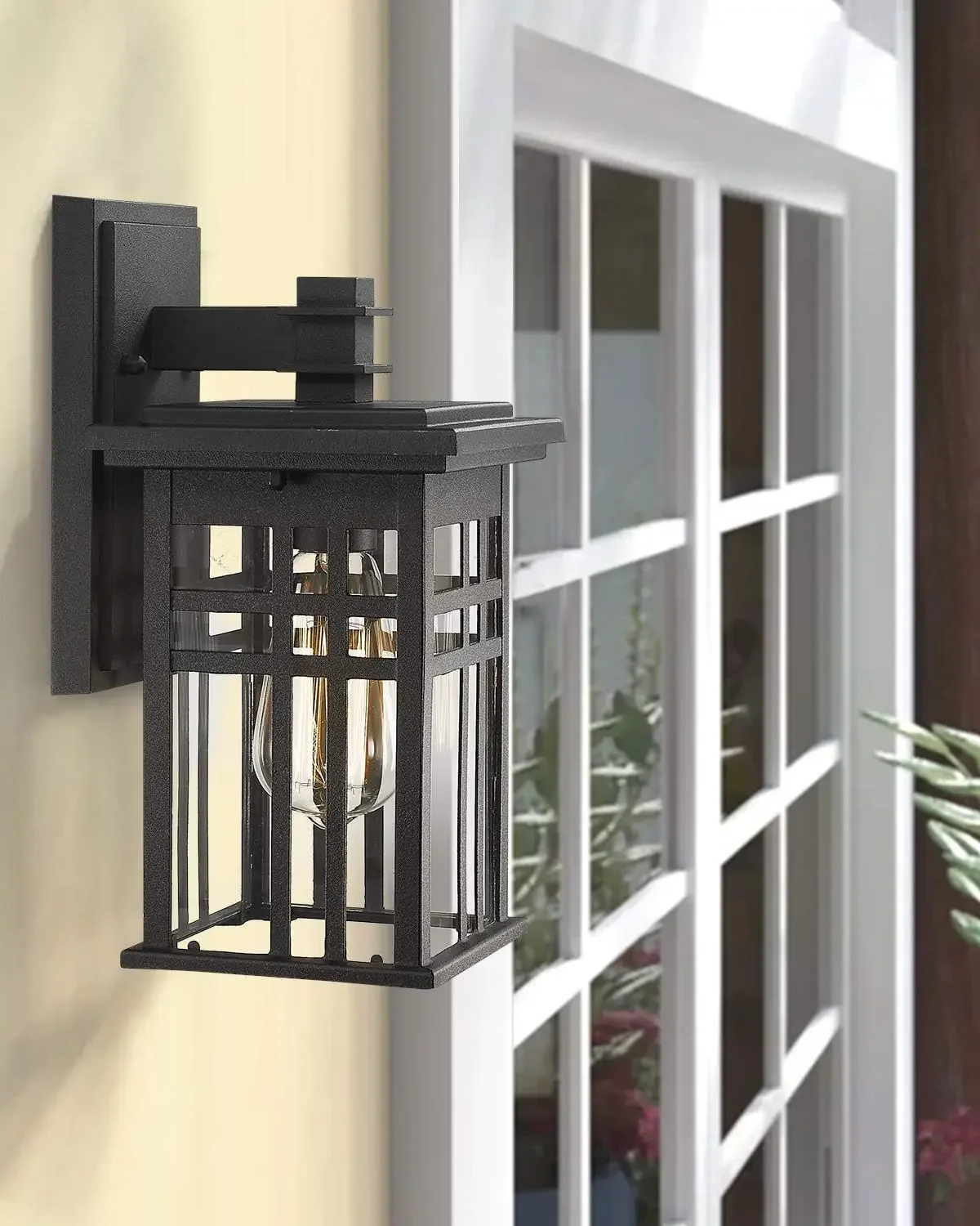 - MODERN DESIGN & WELL RESISTANCE: Weather resistance and can be used in wet locations. This outdoor wall lantern is made of aluminum construction and clear glass shade in black finish.
