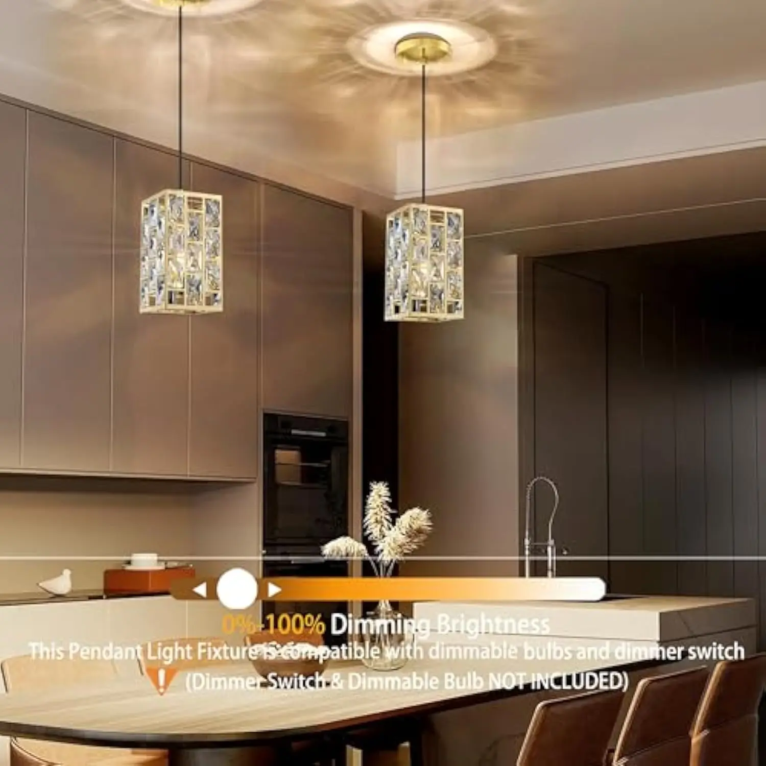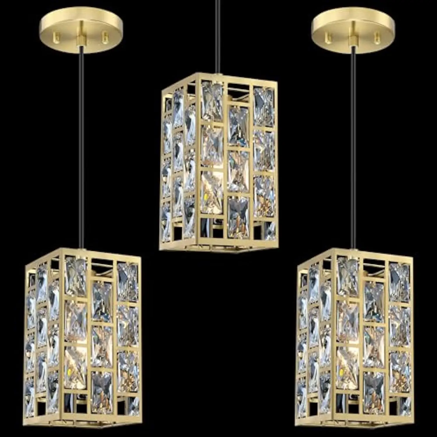 3 Pack 1 Light Hanging Modern Kitchen Island Square Crystal Pendant Light Fixture, Brushed Bronze Finish Crystal Shade3 Pack 1 Light Hanging Modern Kitchen Island Square Crystal Pendant Light Fixture, Brushed Bronze Finish Crystal Shade