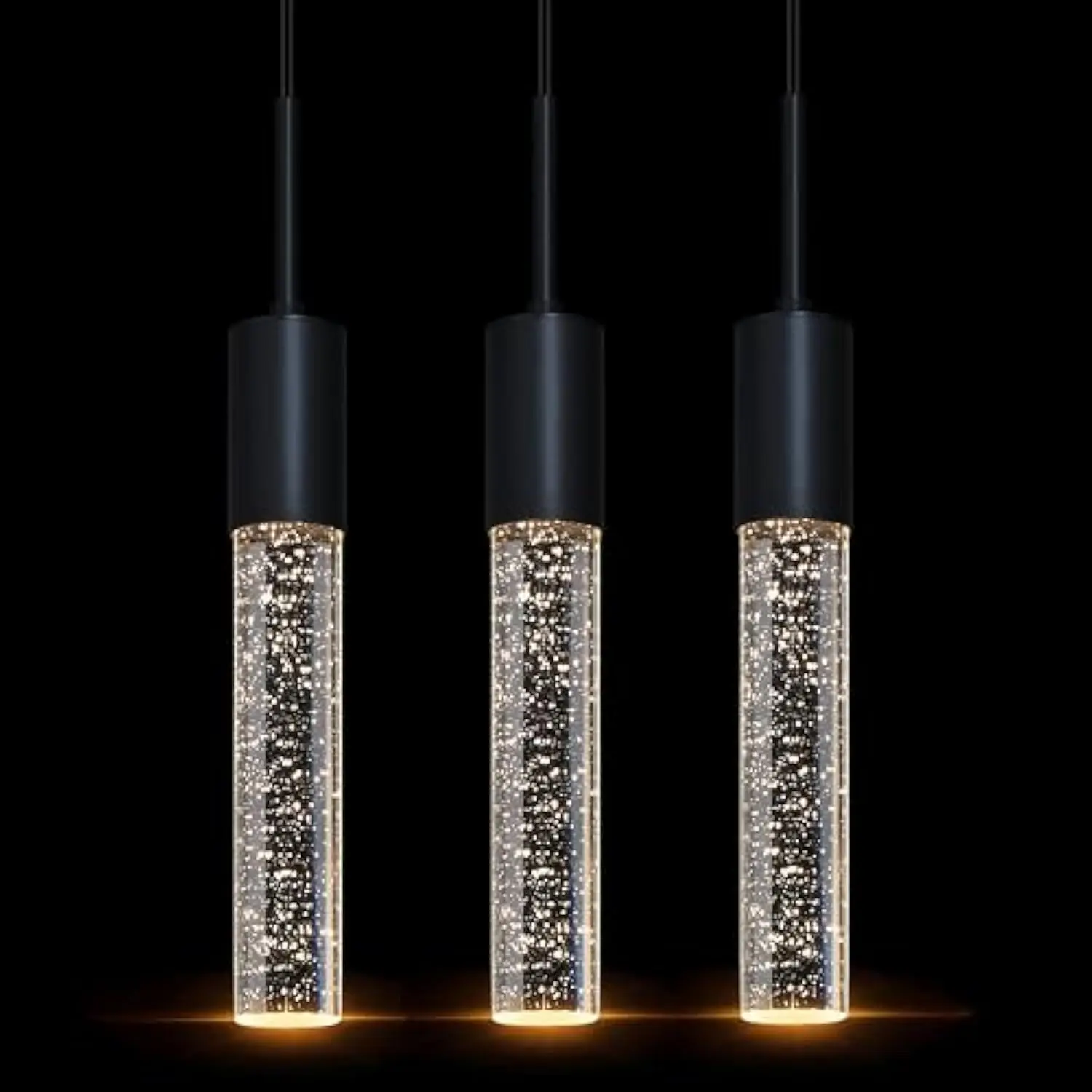 3 Pack Hanging Polyhedron Crystal Kitchen Island Pendant Ceiling Light Fixture, Modern Concise Pendant Lighting Black Finish