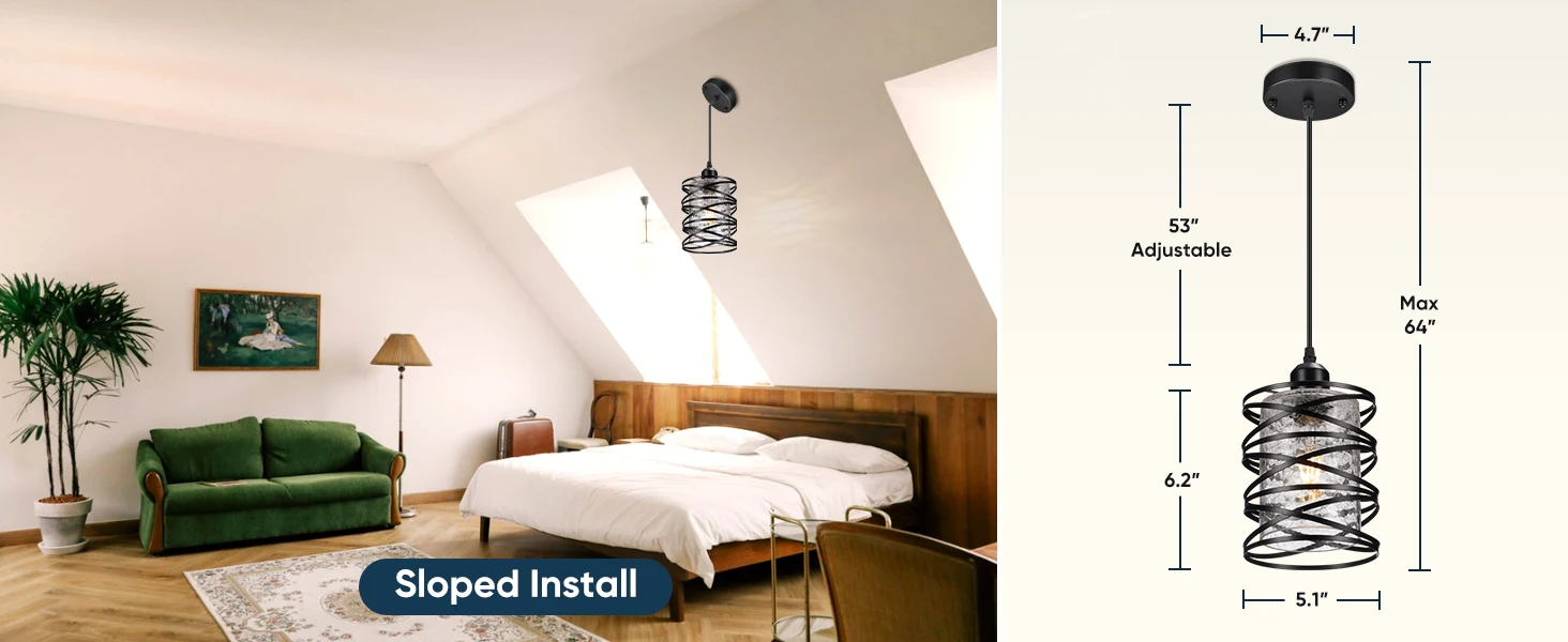 ⭐【59” Adjustable Height & Supports Sloped Ceiling】The over sink pendant lighting fixtures uses 59-inch UL certified wire and can be adjusted to suit the height. And supports installation on flat or sloped ceilings. (Note: Curved ceilings are not supported). Whether it is a kitchen with a flat ceiling or a loft bedroom with a sloping ceiling, this glass pendant lights is a good choice.
