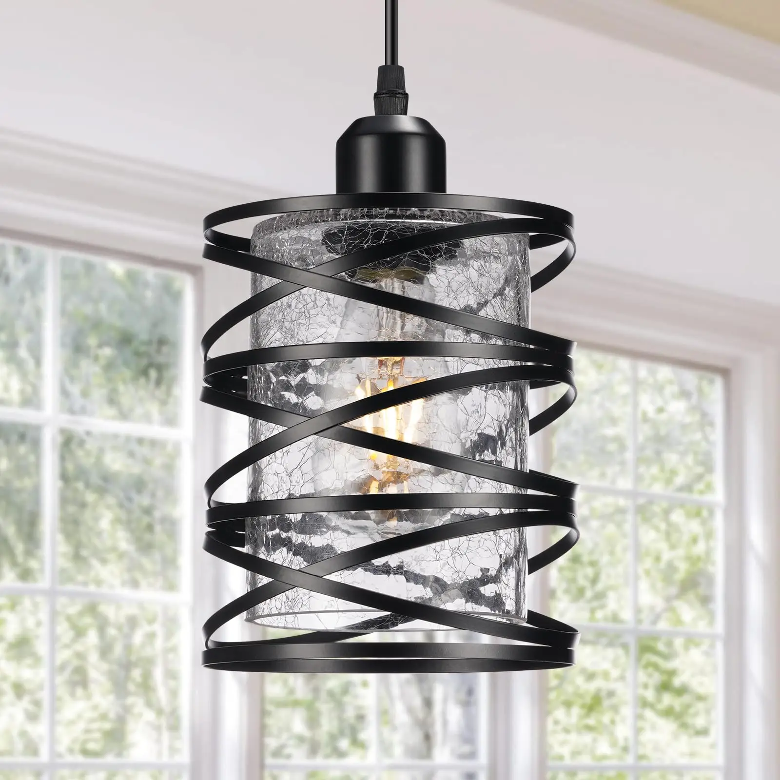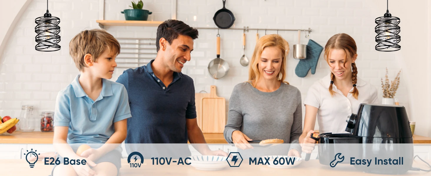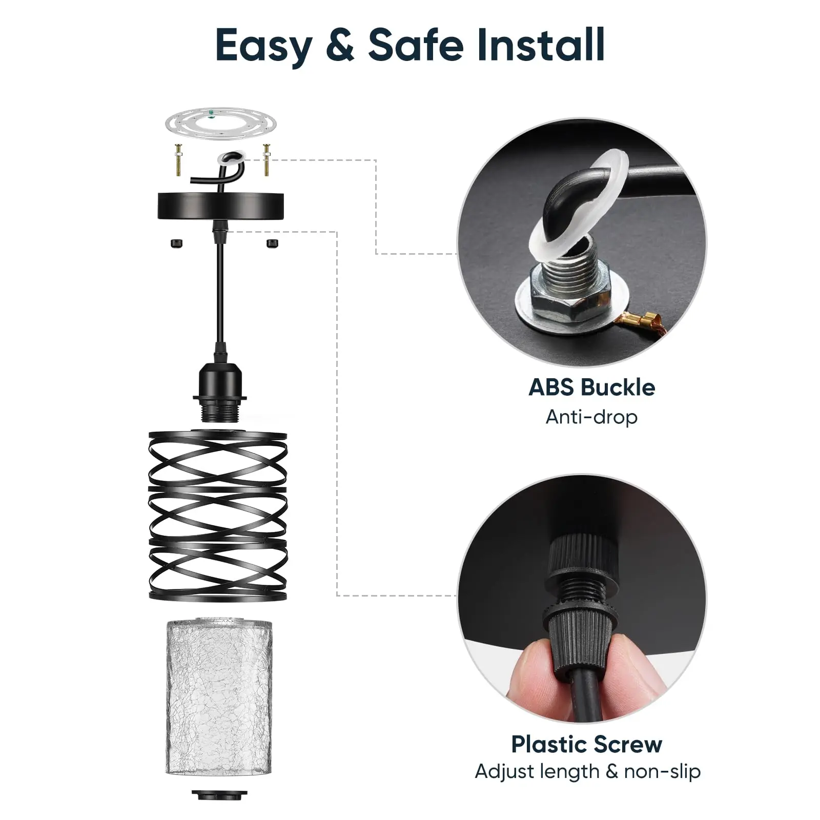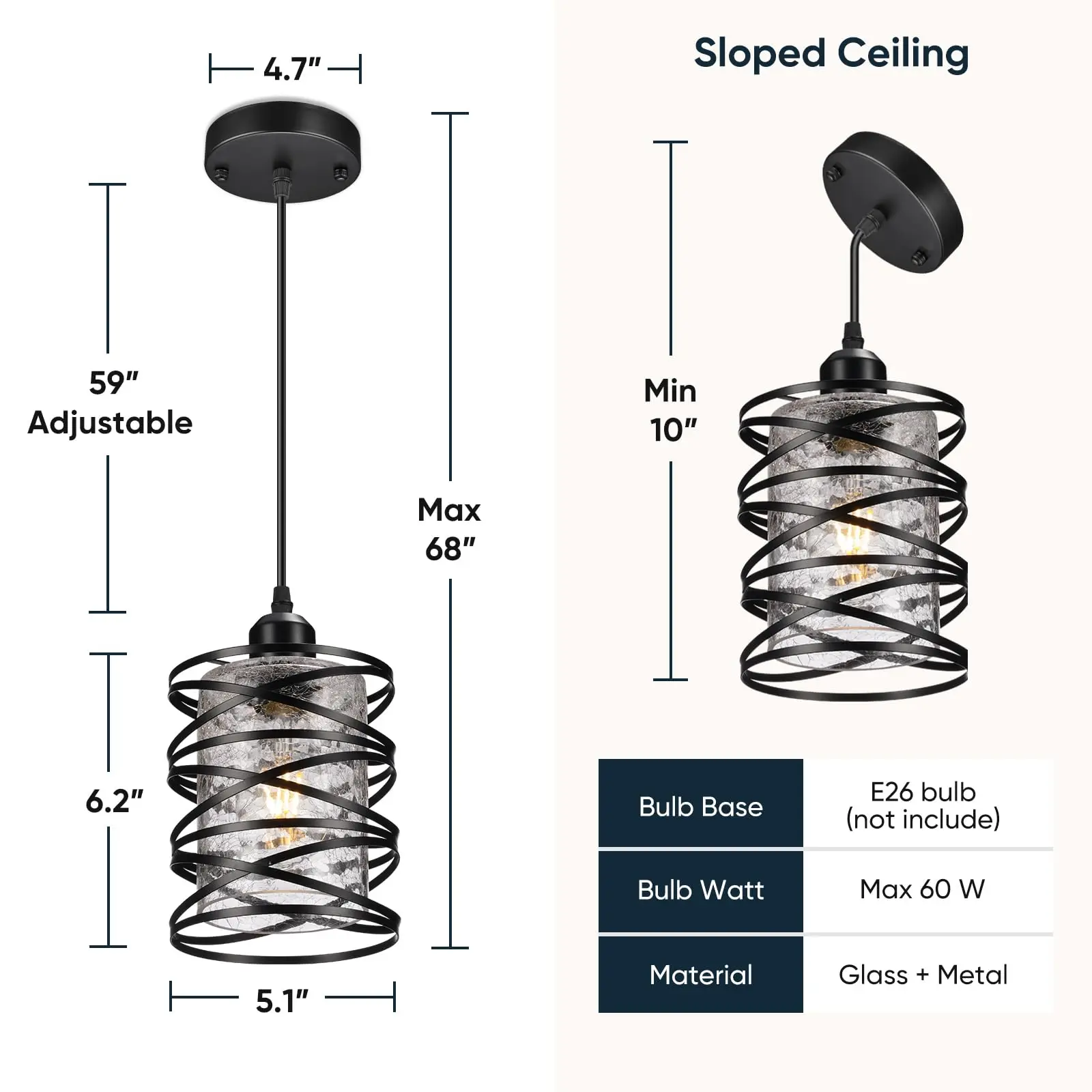 ⭐【3 Variety Uses & E26 Base】The E26 hanging light fixtures spiral cage or glass shade can be used alone, uitable for use in a variety of scenarios.This light uses a UL certified E26 base, compatible with any LED / CFL / incandescent / Edison bulbs, 60W MAX each bulb. (Bulb not included).The glass hanging lights can provide good lighting and atmosphere to your home.