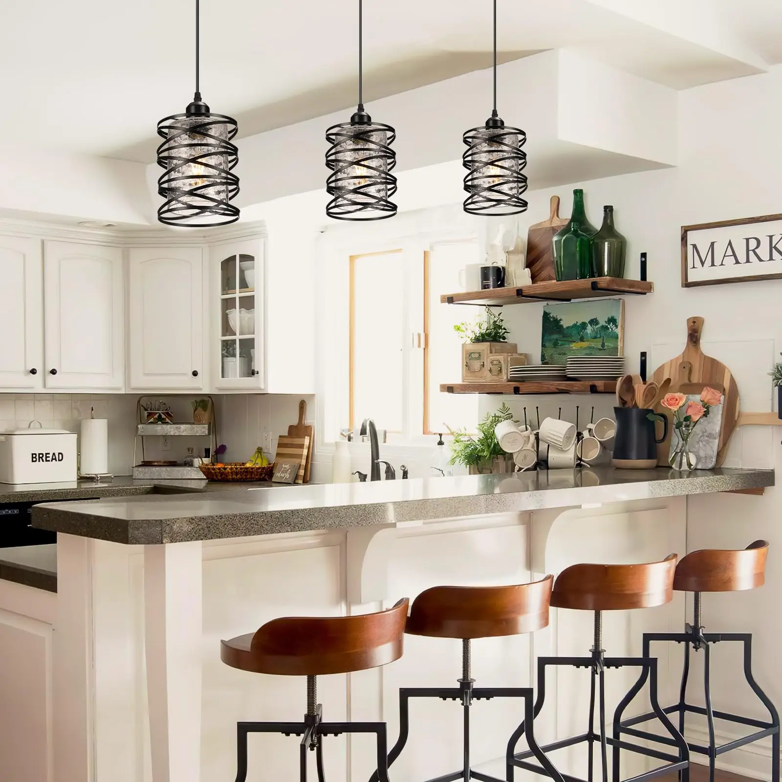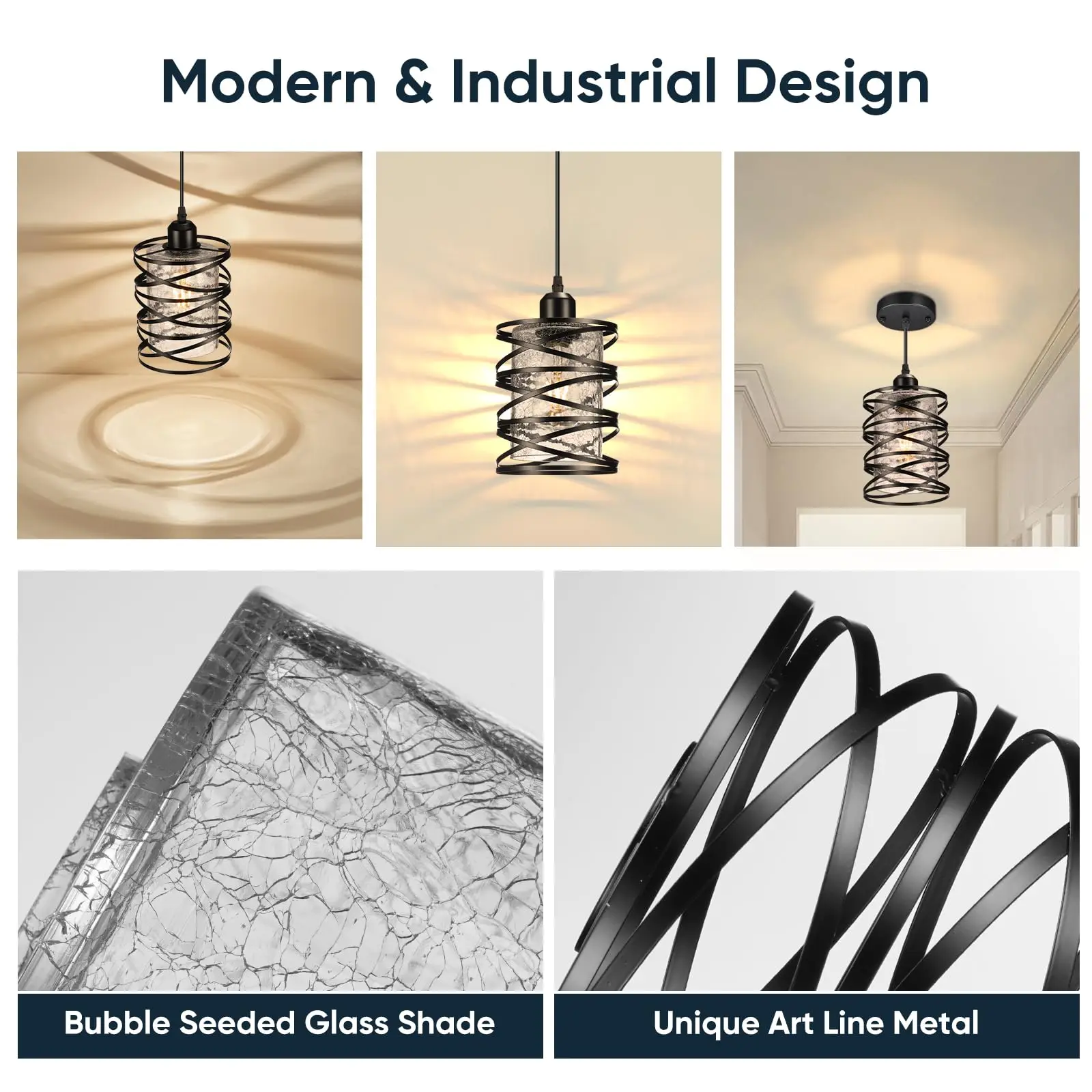 ⭐【Thick Seeded Glass Shade and Spiral Cage】The black kitchen pendant light shade is hand-blown, and every seeded in the glass is clearly visible. Moreover, this hanging kitchen light spiral cage is made of nano-baked paint, which is more stable and anti-corrosion. Combining the seeded glass lampshade and the spiral cage together creates a very beautiful lighting effect under the light, creating perfect pendant lights suitable for restaurants, bars, kitchen islands, above sinks and bedrooms, etc.