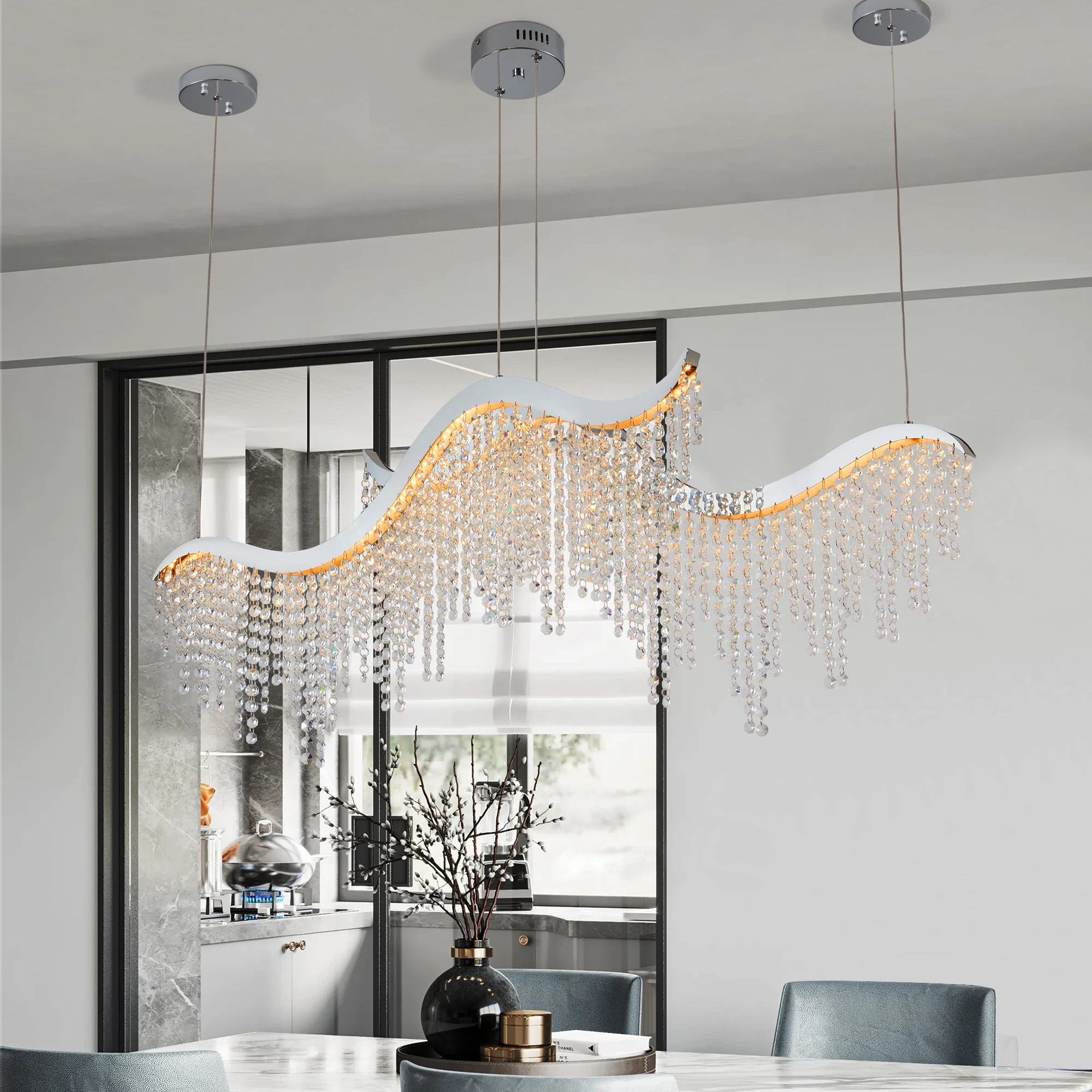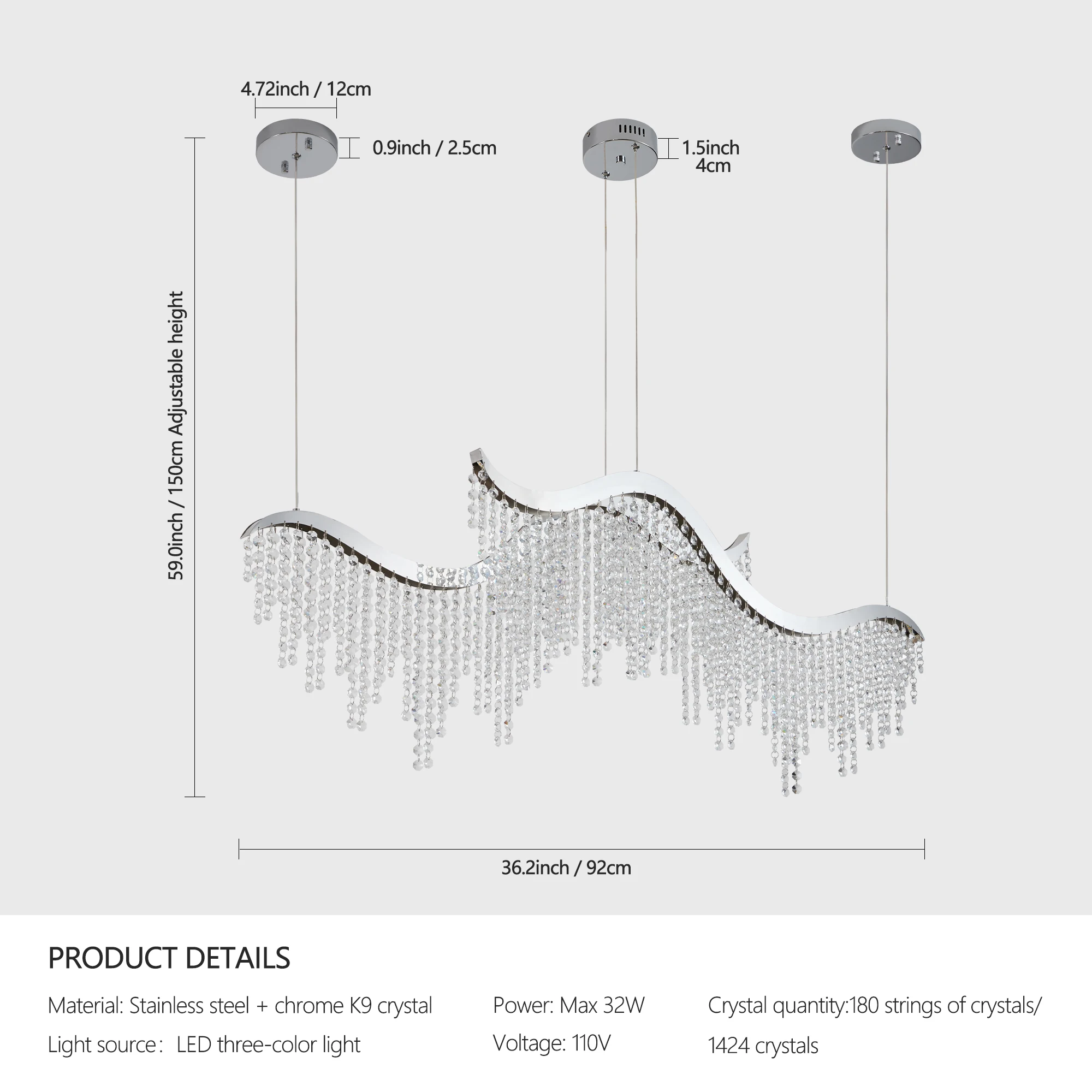 36.2-inch Modern Wave Led Crystal Chandelier – Adjustable Color Temperature 3000K/4000K/6000K – Adjustable Height – Elegant Chandelier