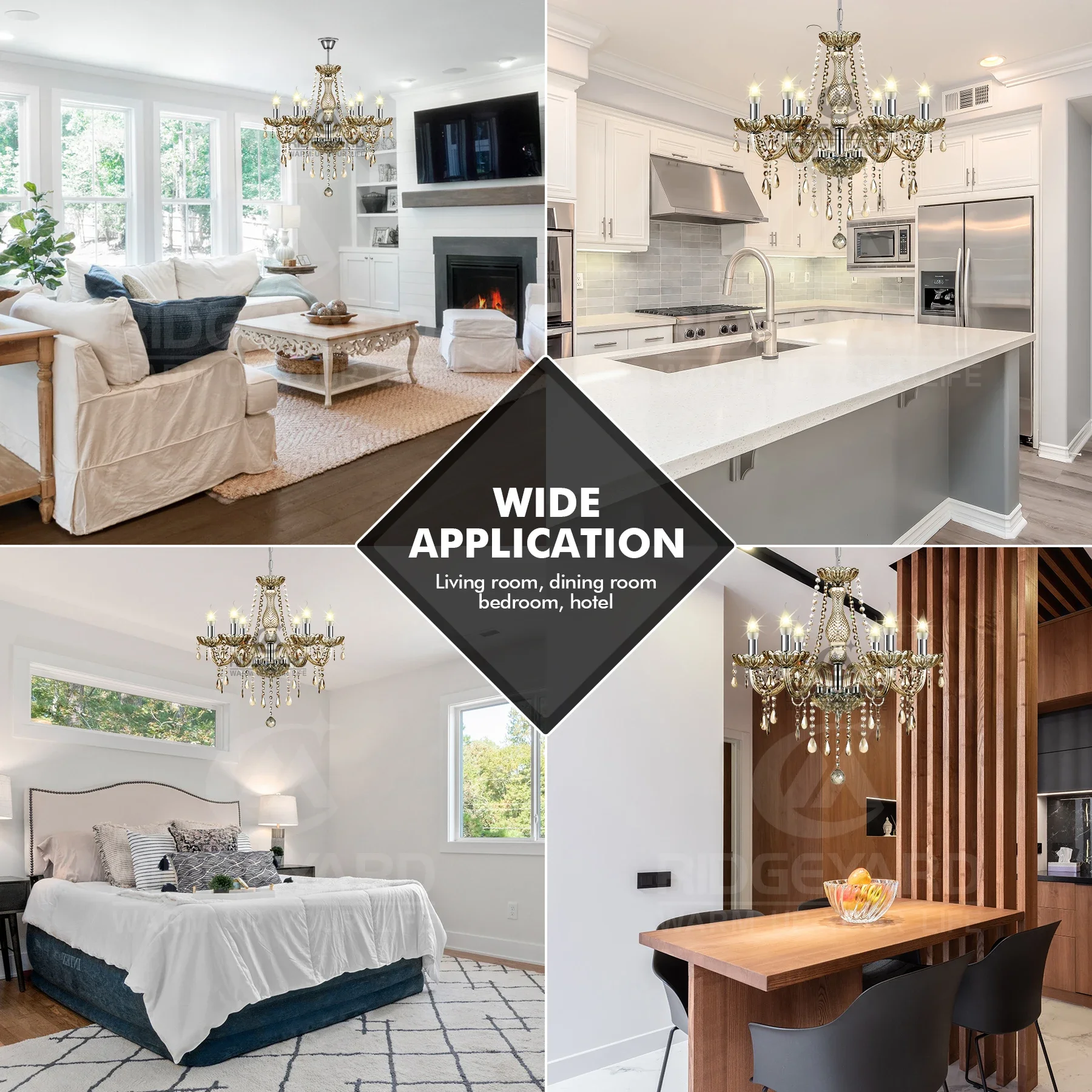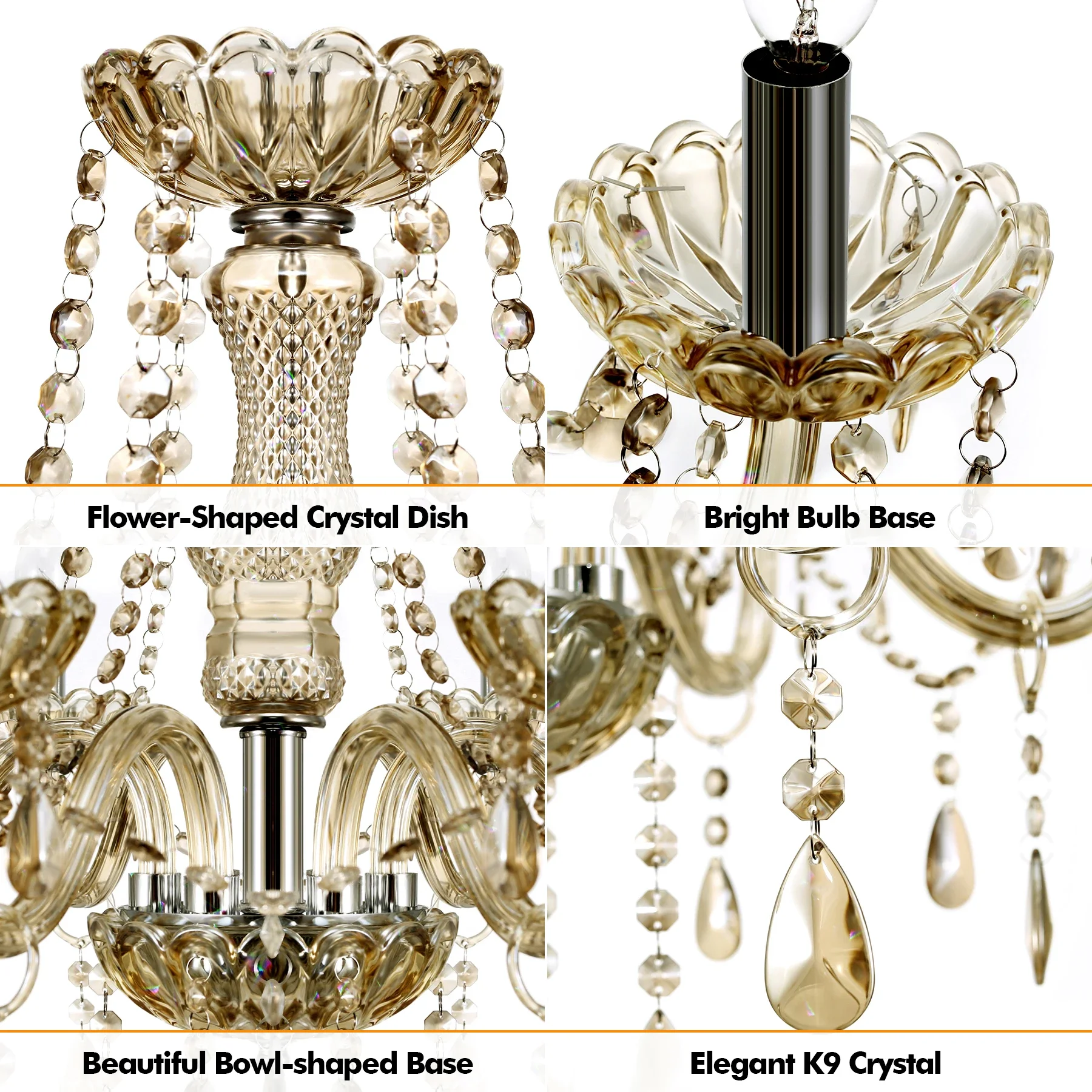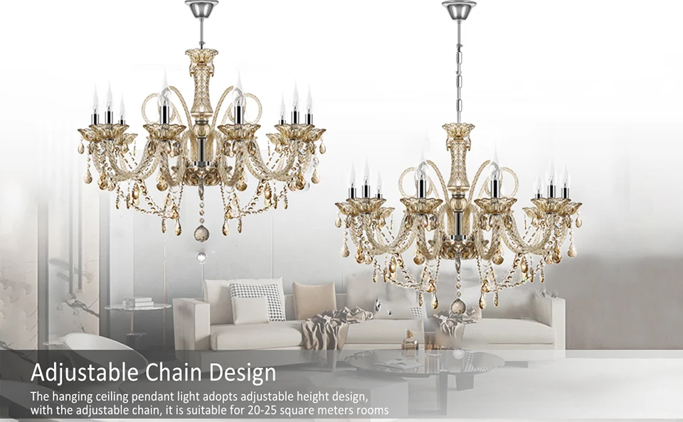 It is a classic European style chandelier. With exquisite cutting, the clear and angular crystal can reflect sparkling light to create a romantic and elegant atmosphere perfectly. It is suitable for hallway, living room, dining room, bedroom,shop, boudoir,bars and restaurants,etc.
