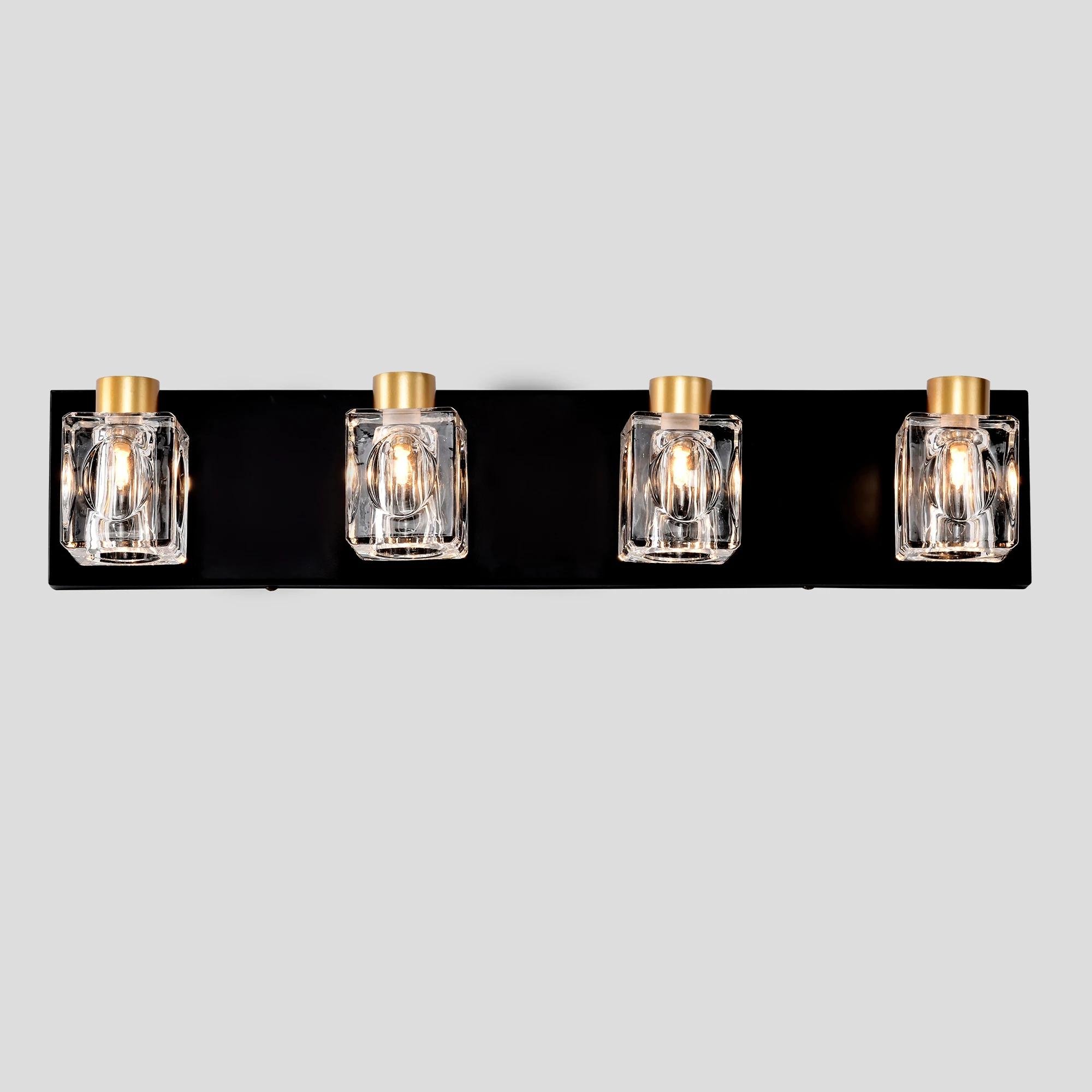 4-Light Matte Black + Gold Bathroom Light Fixtures, Modern Vanity Lights with Crystal Glass Shade, Vintage Light Fixture