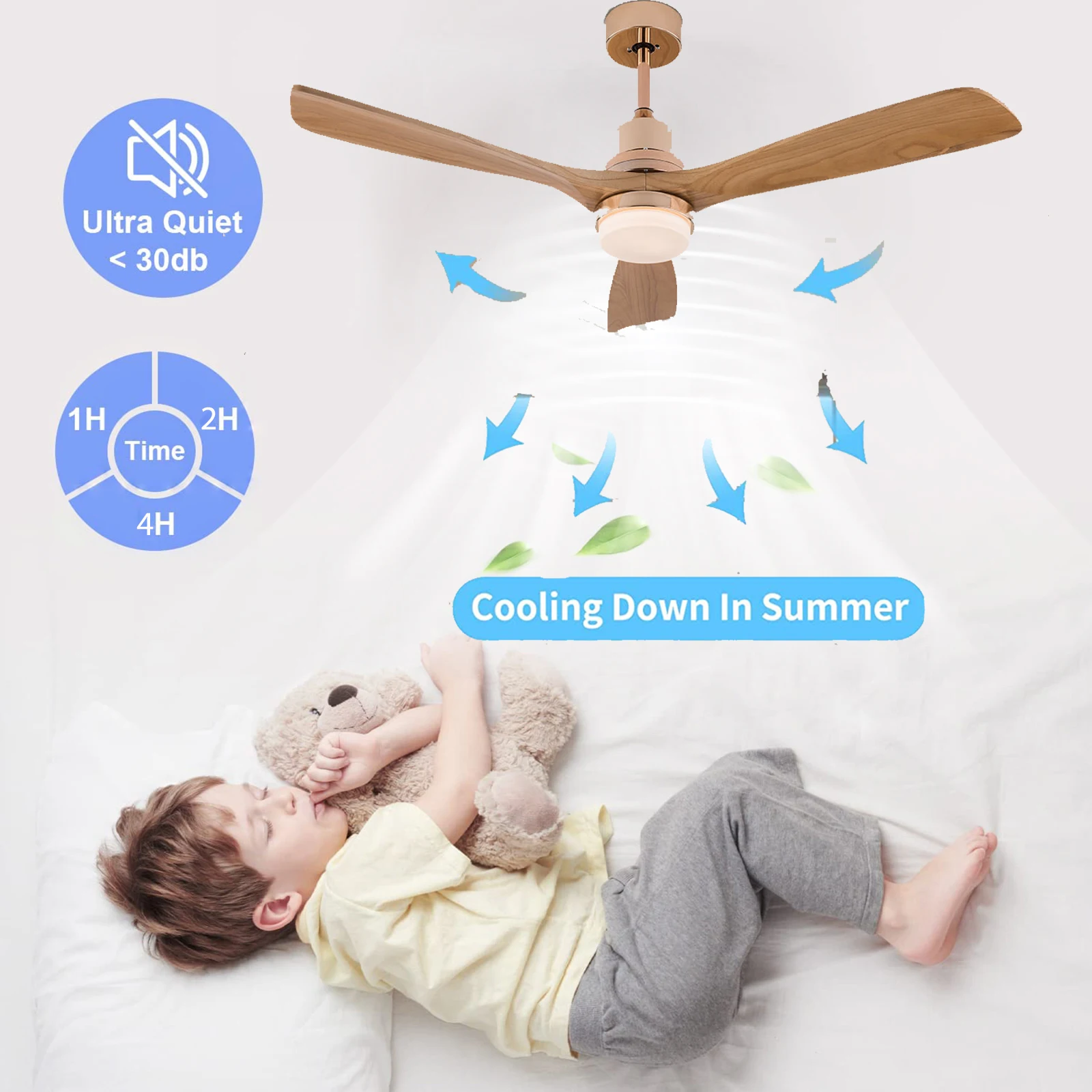 ✔ Reversible Quiet Motor: DC powered outdoor ceiling fan that cools your room in summer and helps rotate warm air and reduce energy costs in winter by holding down the reversible button. The effective area is about 100~250 square feet.