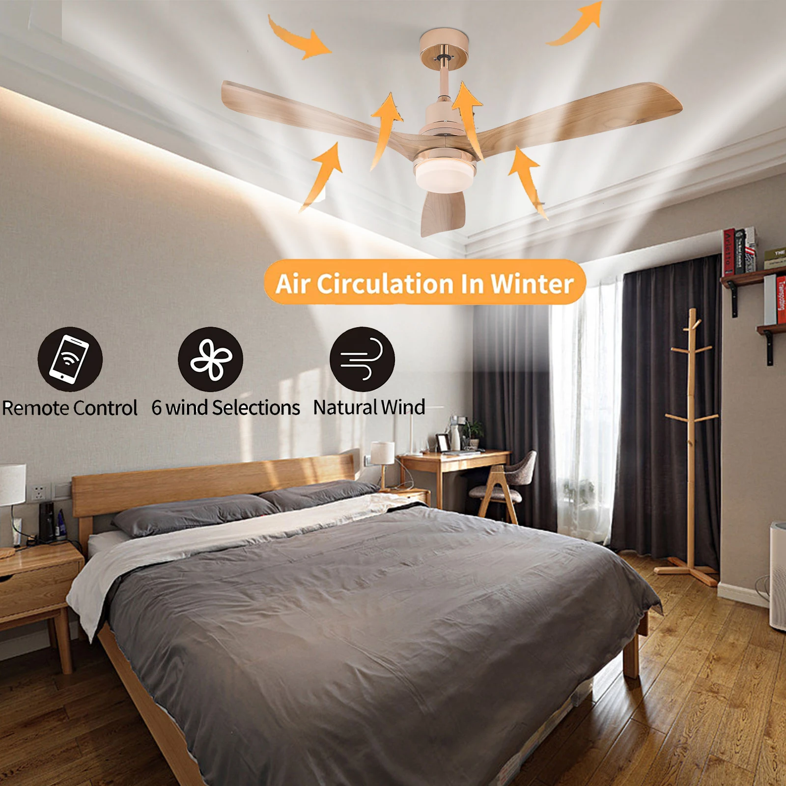 ✔Modern Ceiling Fan with Remote Control: Ceiling Fan with Light and Remote Control You can use the remote control buttons to change the running direction of the fan, light, 6-speed wind speed adjustment, and timing remote control (1/2/4H).