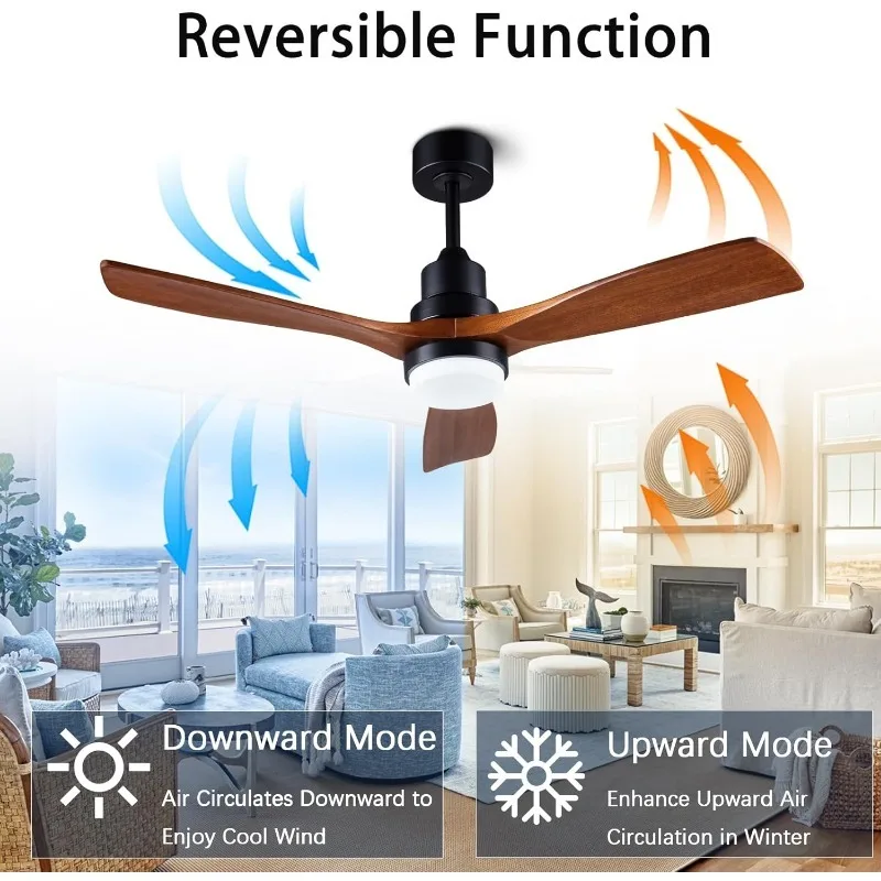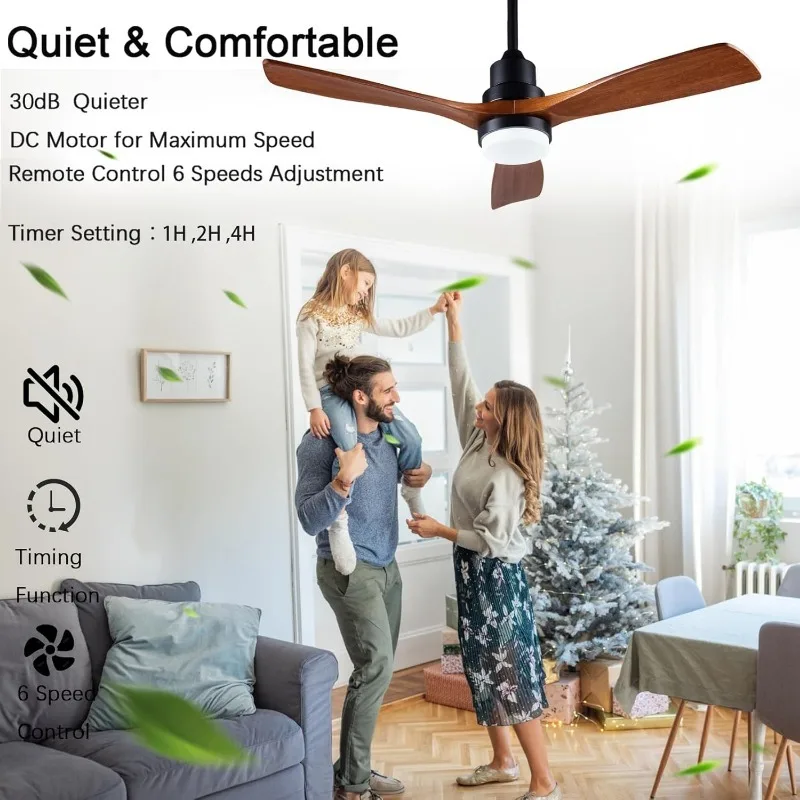 ▲【QUIET CEILING FAN】: 48-inches solid wood ceiling fan with low dry sound, maximum speed at 185r/min, decibel below 30DB, DC inverter motor is made of thick copper wires, perfect for use in living room, office, study, farmhouse, etc., and can be installed on concrete roofs with a tilted 15-degree angle.