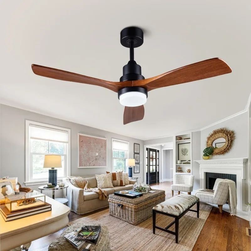 48″ Wooden Ceiling Fans with Lighted Remote Control, Indoor Outdoor Wooden Ceiling Fan, Outdoor Modern Ceiling Fan with 3 Fan Blades for Patio, Living Room, Farmhouse, etc (Black + Walnut)
