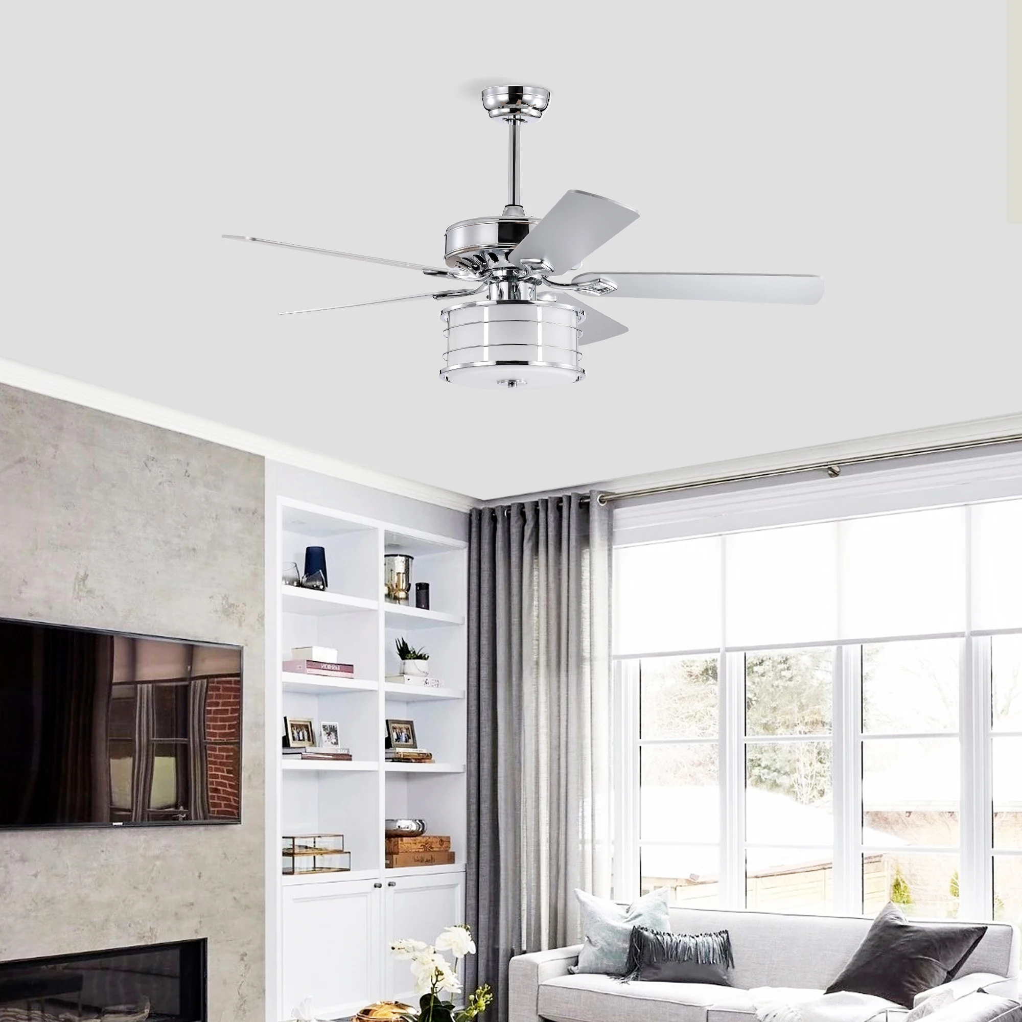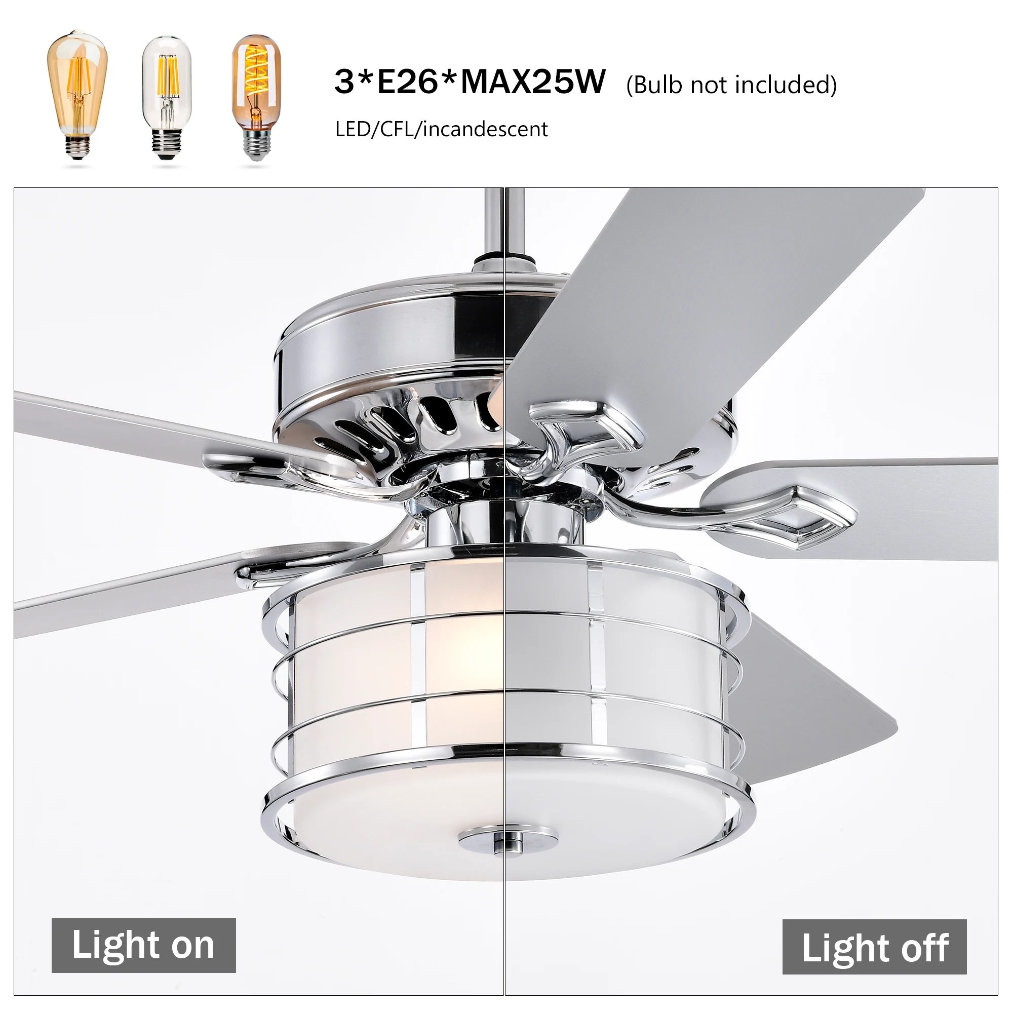 52" 3-Light Chrome Ceiling Fan + Remote, Traditional Farmhouse Rustic Industrial Bohemian Country Cottage Transitional Glam52″ 3-Light Chrome Ceiling Fan + Remote, Traditional Farmhouse Rustic Industrial Bohemian Country Cottage Transitional Glam