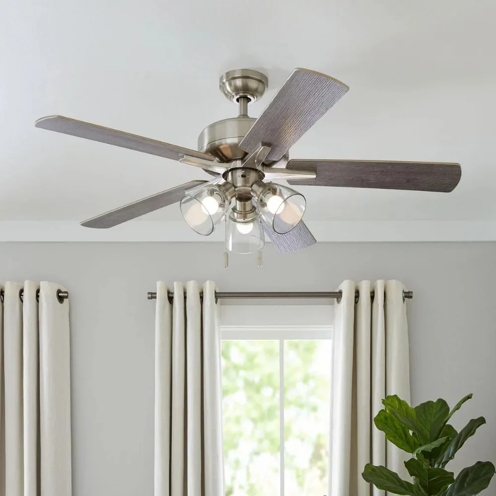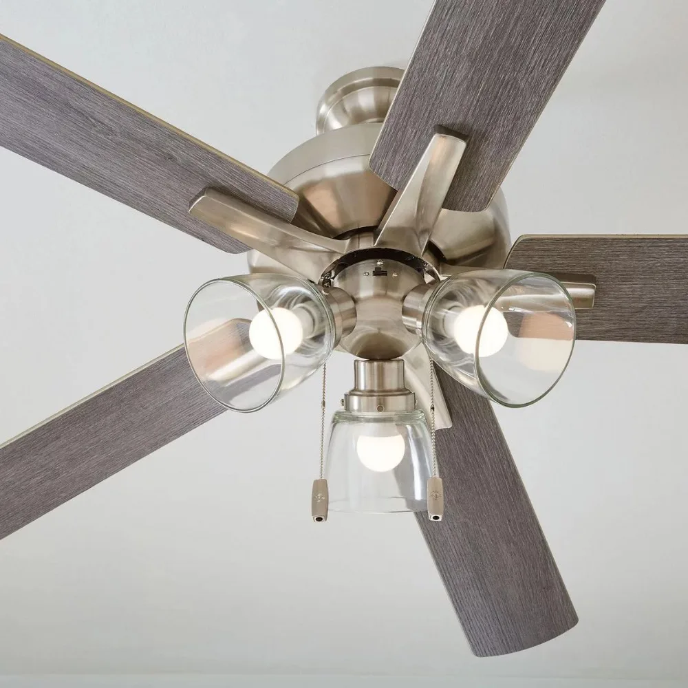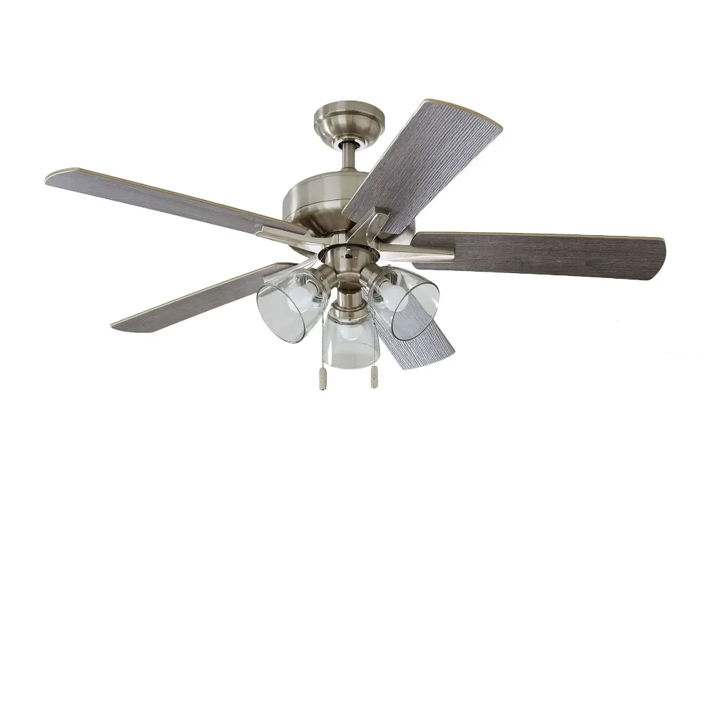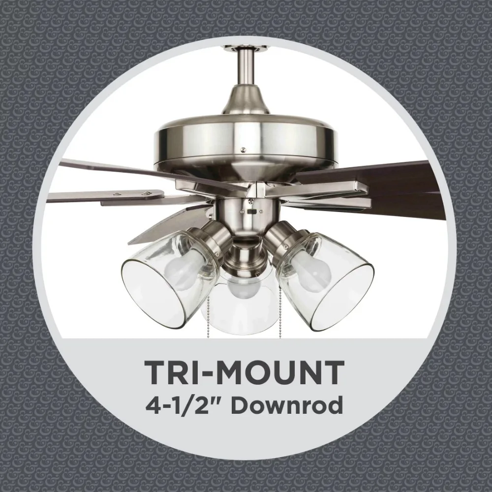 This 52″ 3 Light, 5 Blade Ceiling Fan in Bronze with Reversible Blades is the perfect addition to transitional spaces, serving up both powerful air flow and a fresh take on a classic style. With three pull-chain adjustable speed settings, this down rod fan is sure to deliver a high quality, quiet performance while saving energy both in the summer and winter months. Easy installation can be mounted on a sloped ceiling.