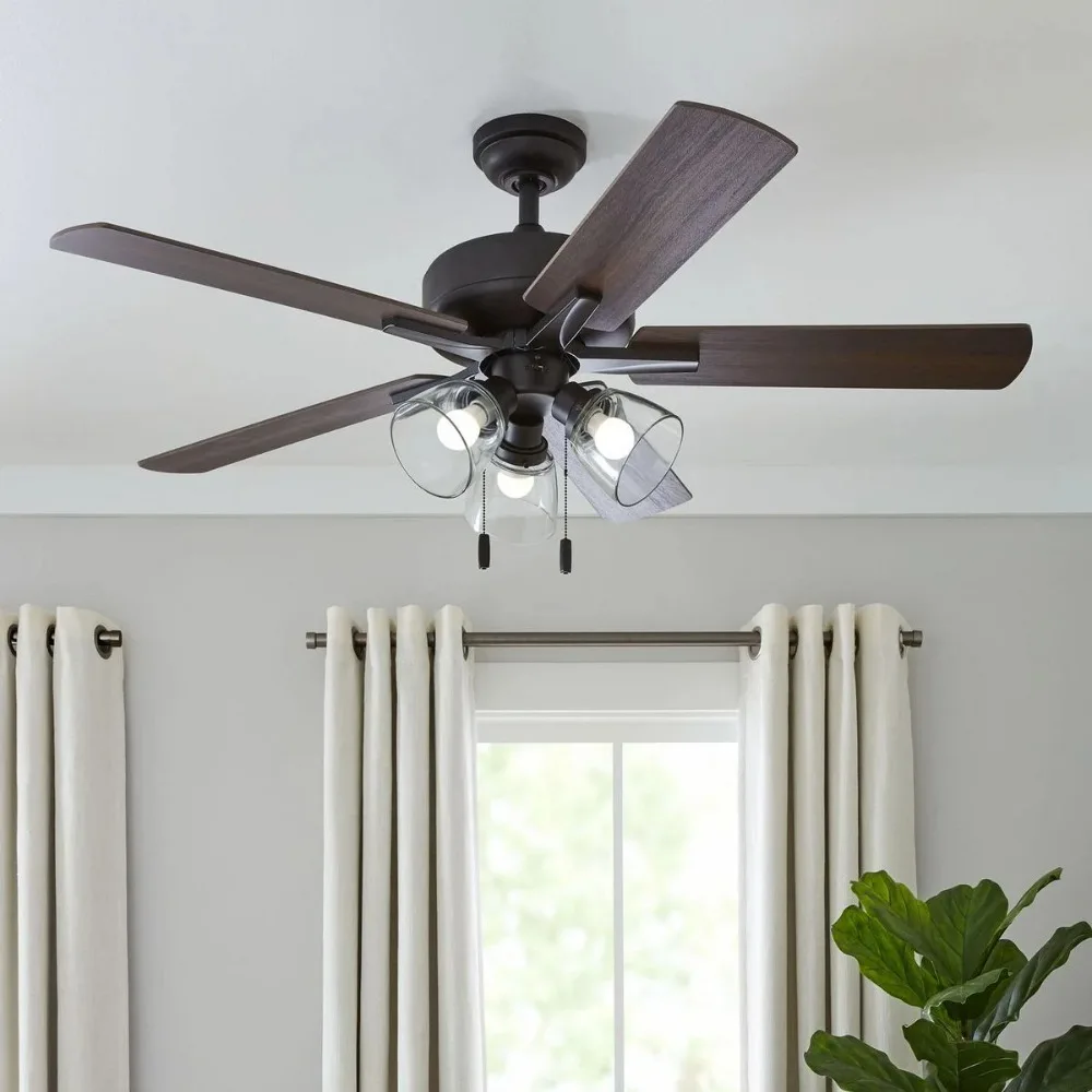 52″ Bronze Transitional Ceiling Fan with 5 Reversible Blades and 3 LED Bulbs