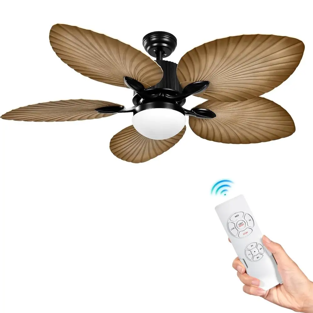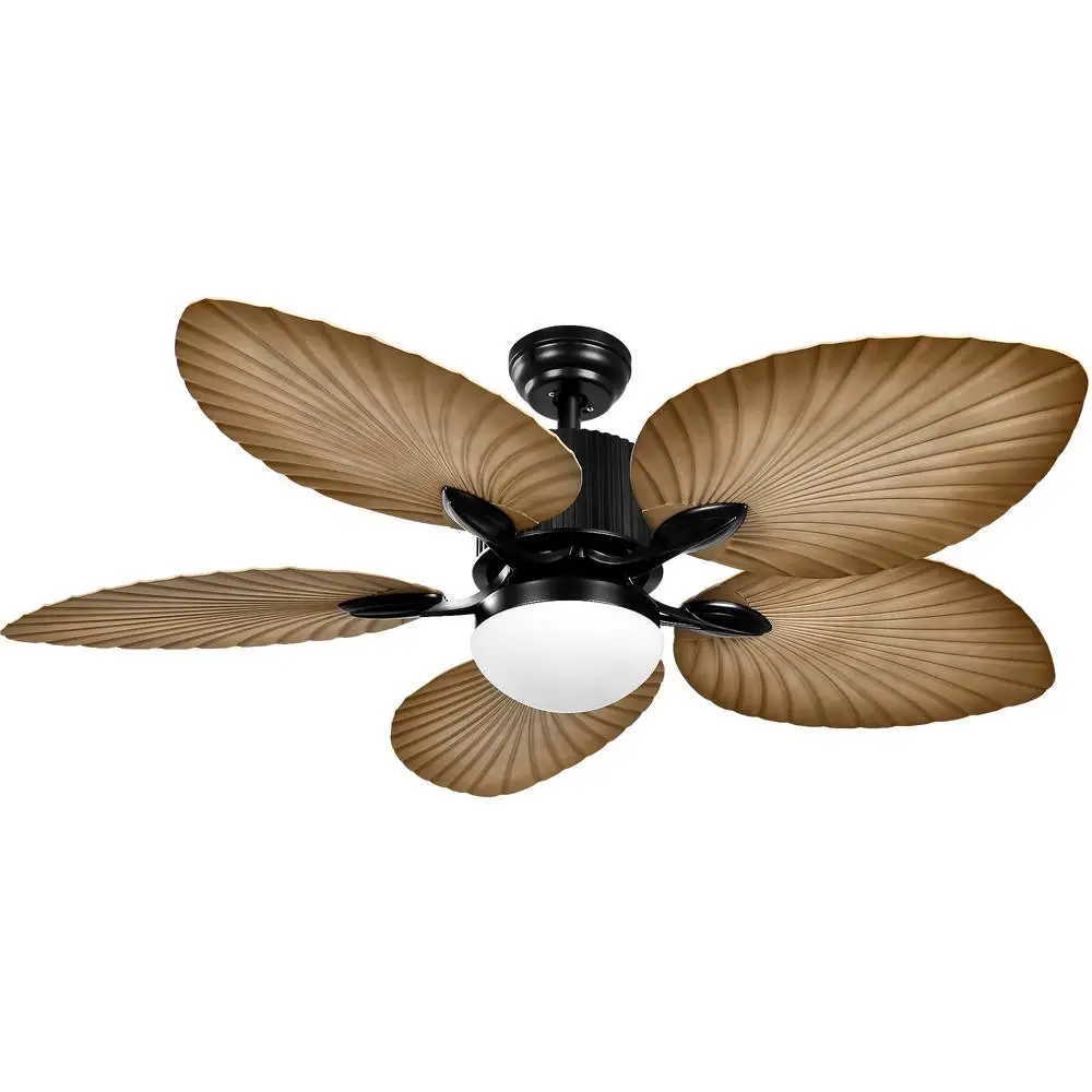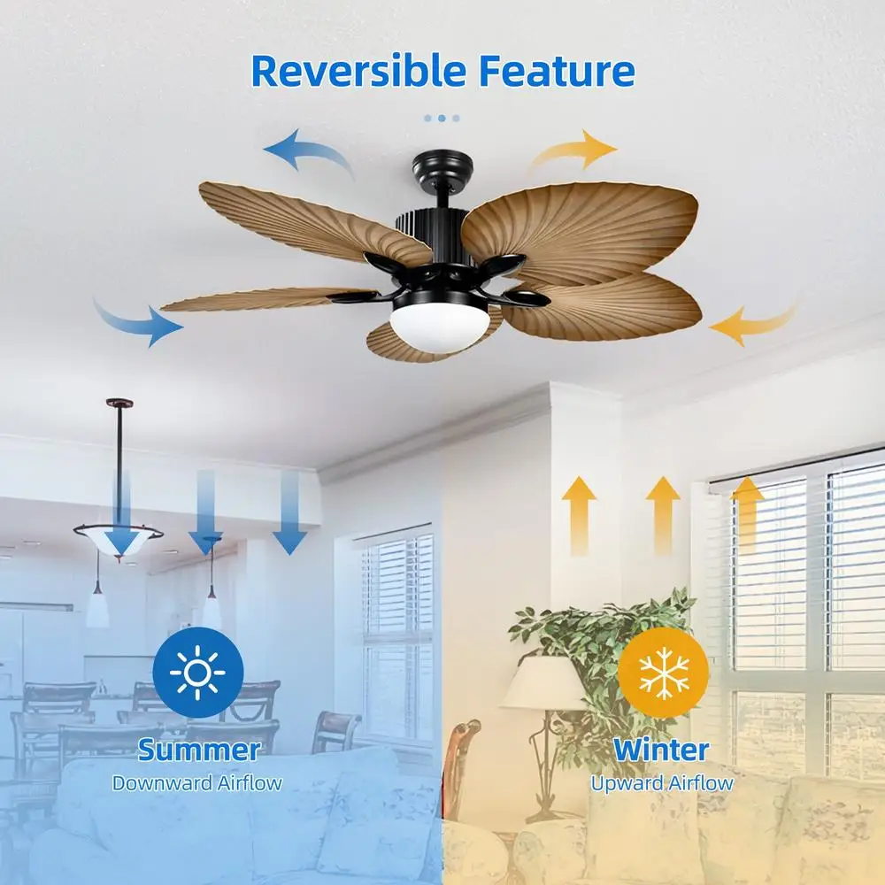 Reversible DC Motor for Comfort: Equipped with a reversible DC motor, this fan can switch from downward airflow in summer to upward airflow in winter. This feature provides a strong and cool breeze in summer and enhances air circulation in winter, making it more energy efficient than traditional motors for a comfortable experience. Simple and Flexible Installation: This ceiling fan comes with 5″ and 10″ downrods, offering flexibility for standard or angled mounting on most ceilings. It’s designed for easy installation, with the ideal height for floors and the ability to be set up by one person within 45 minutes, making it a convenient addition to any home space. LED Lighting with Memory Function: The fan allows you to switch between 3 color temperatures for optimal eye protection and ambiance in various rooms. The memory function saves your settings, so you don’t have to readjust them every time the fan is turned on, providing convenience and personalization. Tropical Aesthetics and Durability: This attractive tropical ceiling fan is designed with 5 palm leaf blades, infusing your home with a tropical island vibe. Solid, lightweight, and aerodynamic, it’s built to maintain its appearance for many years. Certified by ETL, FCC, and the Environment Protection Agency for safety and environmental compliance. Quiet Operation for Peaceful Environments: With 6 wind speeds and a whisper-quiet operation under 30db, this fan is ideal for creating a tranquil environment for sleeping, sports, or learning. The included remote control and wall-mount holder make it easy to adjust settings without disturbing your peace.