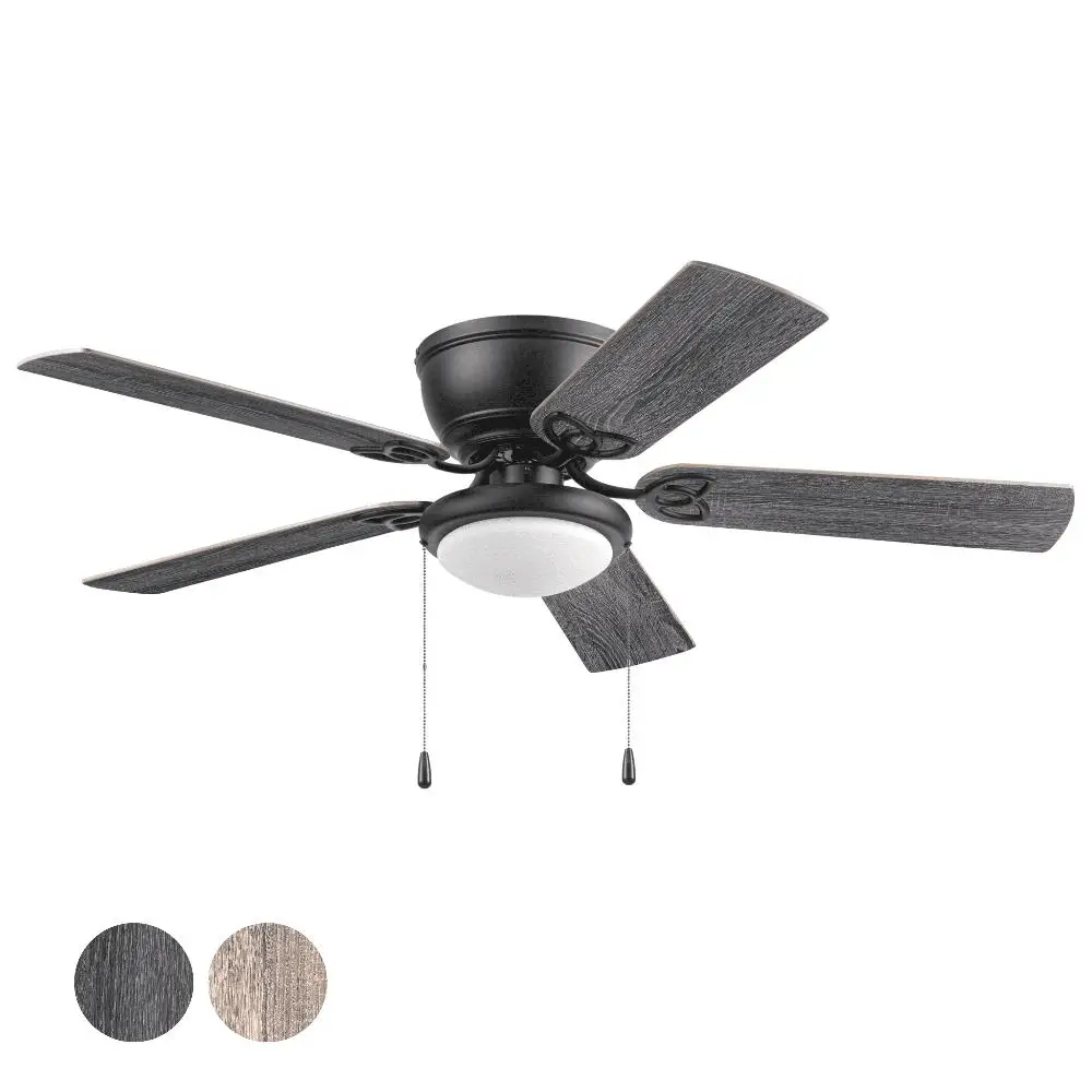 Keep Cool With The Correct Ceiling Fan Size: This 52 inch indoor ceiling fan is ideal for large areas up to 400 sq. ft. such as bedrooms and living rooms. Low Profile Mount: To be mounted flush with the ceiling where more walk-through space is needed Indoor Ceiling Fan: Perfect for living rooms, bedrooms, or offices Pull Chain Control: Easy-to-use pull chains are included for quick adjustments to the light and speed settings Ceiling Fan With Light: Frosted glass globe houses E26, A19 LED bulb Reversible Blades: Choose between Rough Pine and Coal to best fit your space Crafted With High-Quality Material: The high-capacity motor delivers powerful airflow and quiet performance for years to come; This durable and classic ceiling fan is designed for long lasting comfort; ETL listed