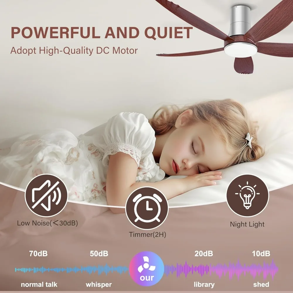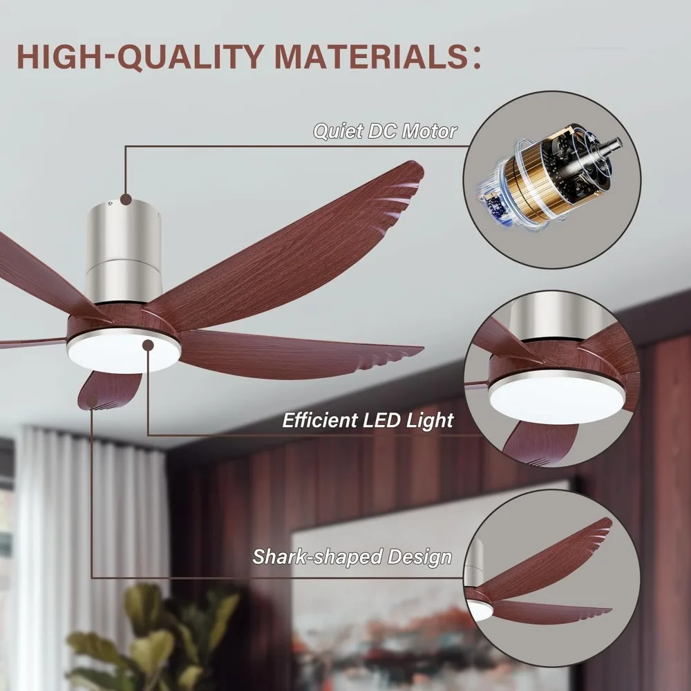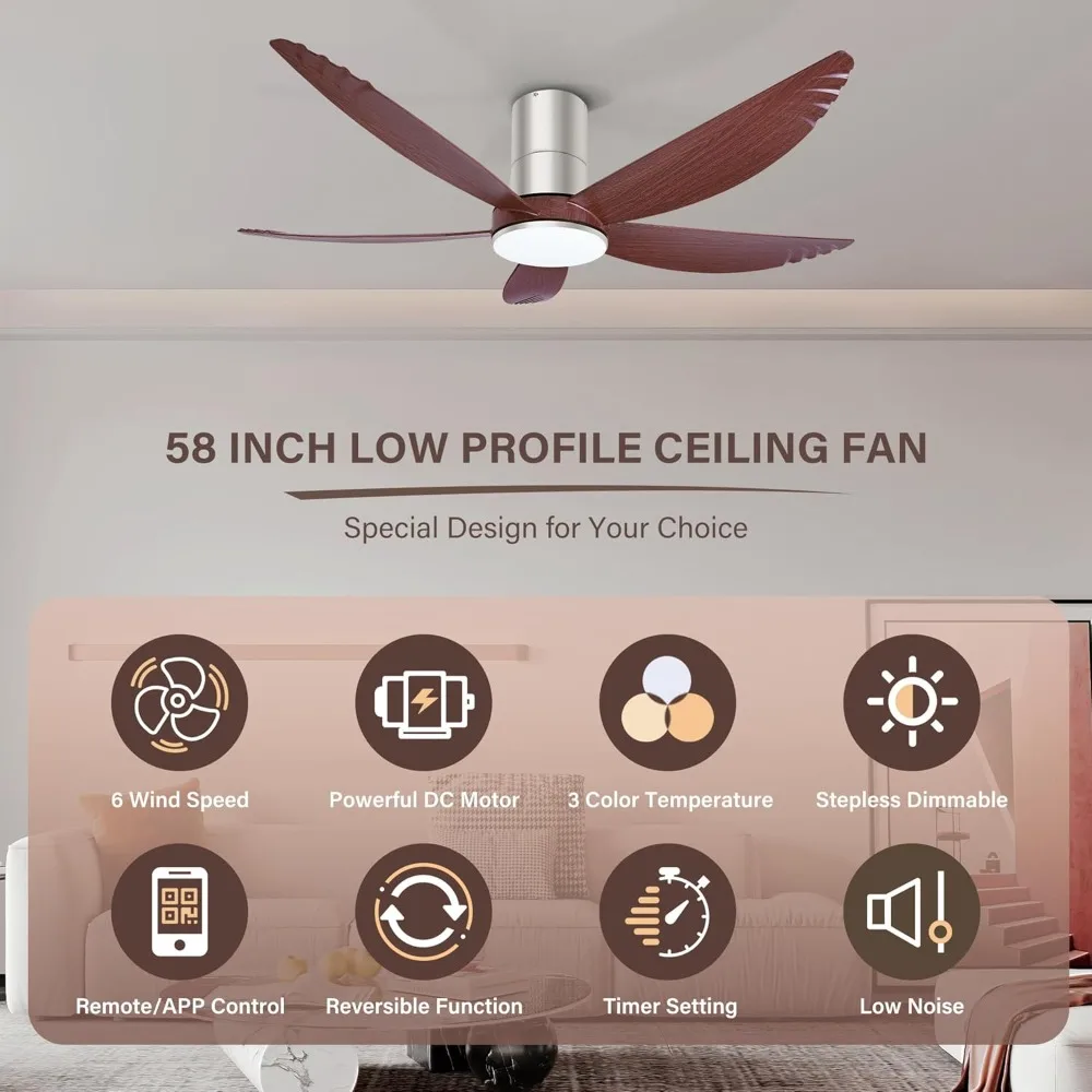 58 Inch Ceiling Fan with Lights, 5 Blades Flush Mount Ceiling Fan with Remote/APP Control58 Inch Ceiling Fan with Lights, 5 Blades Flush Mount Ceiling Fan with Remote/APP Control