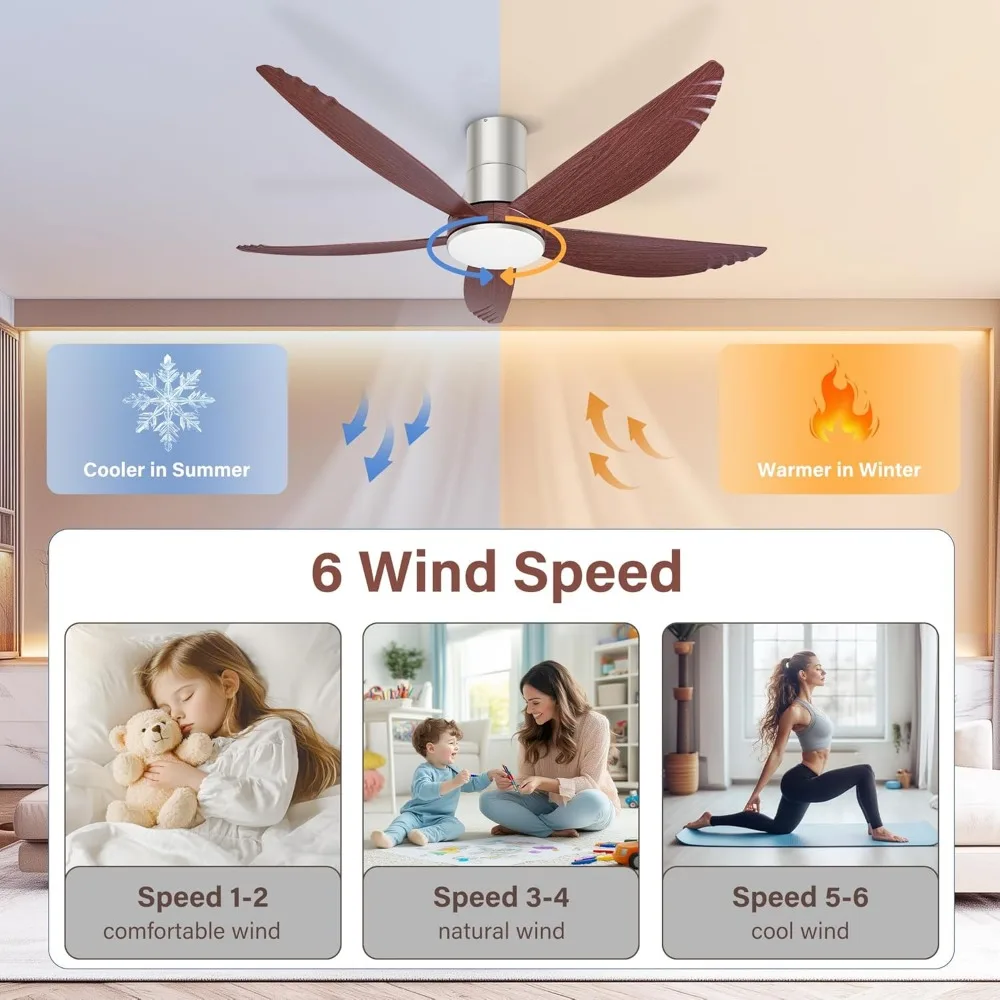 Quiet Reversible Motor: 58 inches 6-speed DC motor ceiling fan is silent and energy-saving. In the summer, the rustic ceiling fan with light forward mode allows air to flow downward to keep you cool and 40 dbs of sound for a comfortable sleeping environment. In the winter, the reverse mode allows air to flow upward so that the warm air produced by the room’s heating equipment is evenly distributed throughout the room. You can use the low profile ceiling fan year-round.