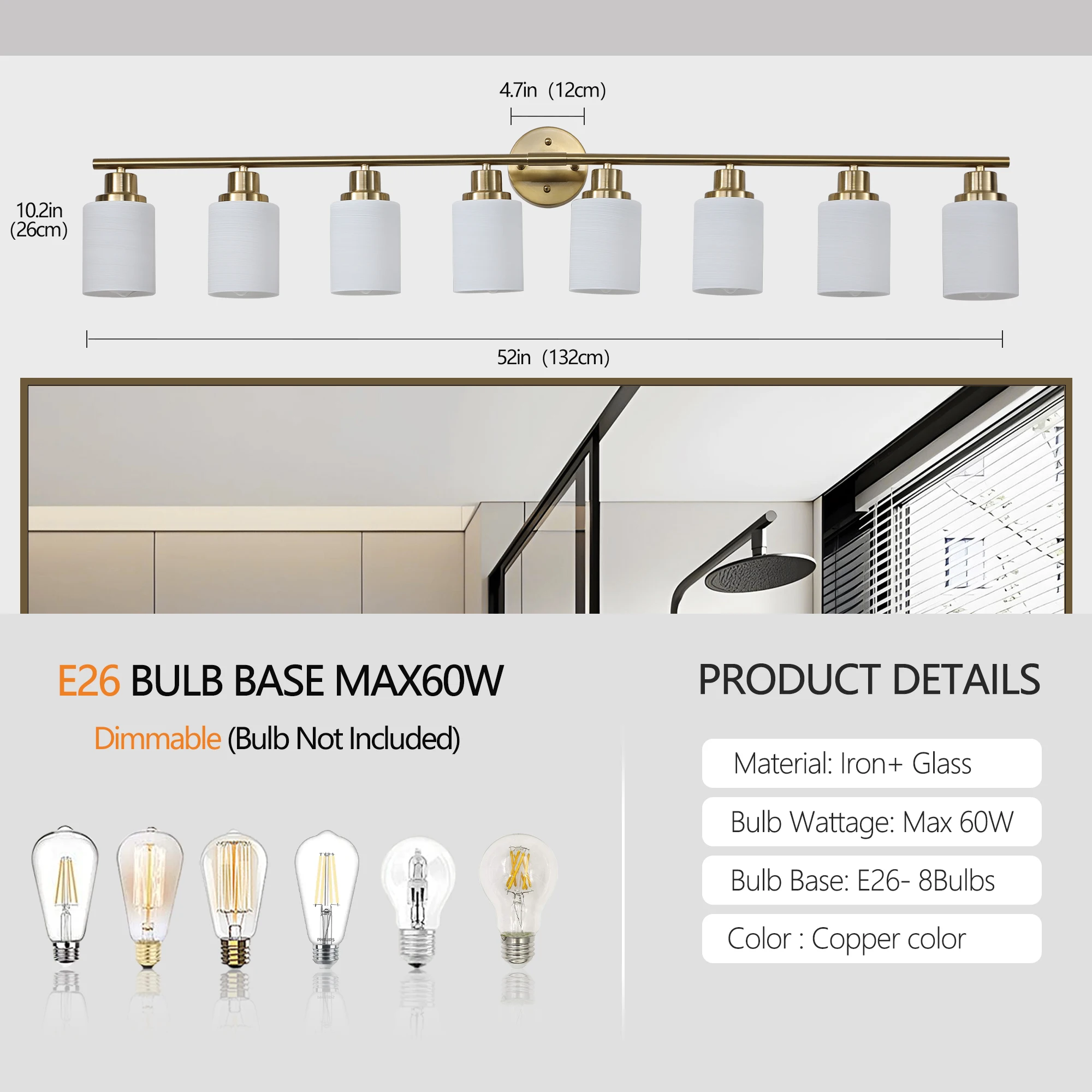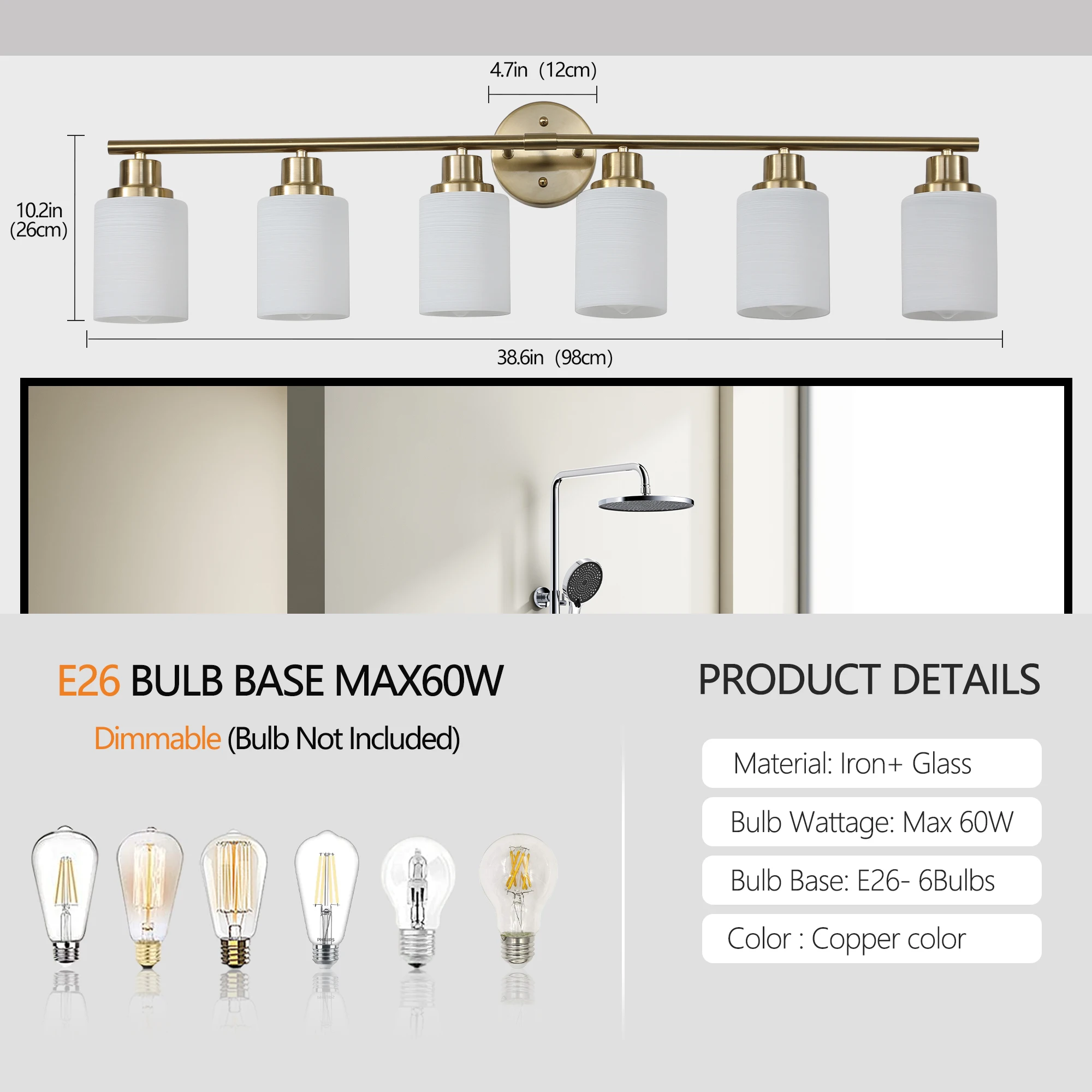 6/8 Lights Golden Bathroom Vanity Light Fixture, Frosted Glass Lampshades, Modern Wall Mounted Lighting