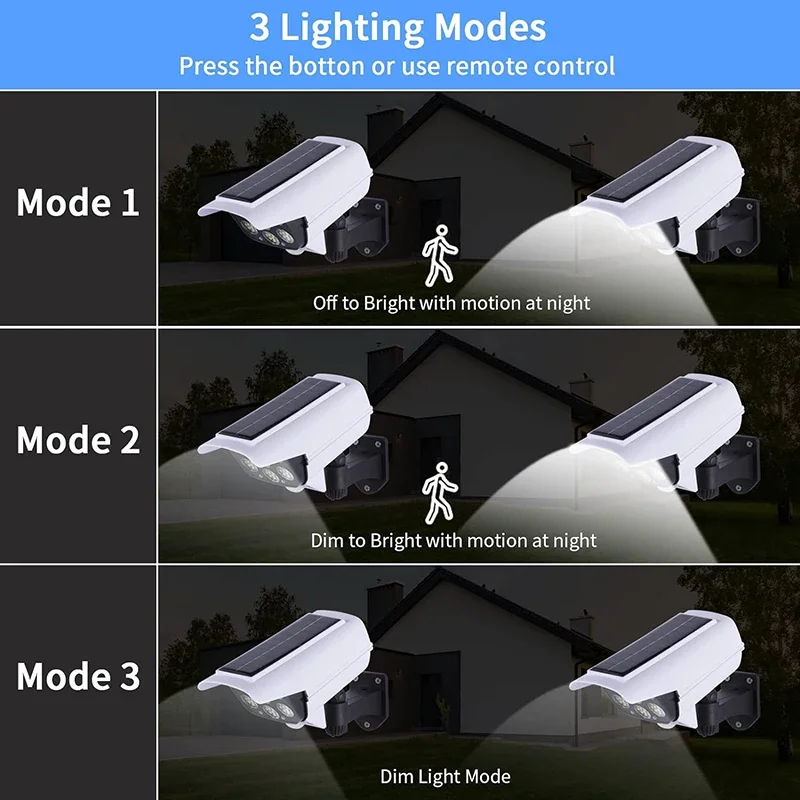 1.2-in-1 Solar Security Light: Keep your home property safe and intruders away. Featuring 77 bright, motion-activated LEDs, sleek, low-profile design. More realistic dummy security light.