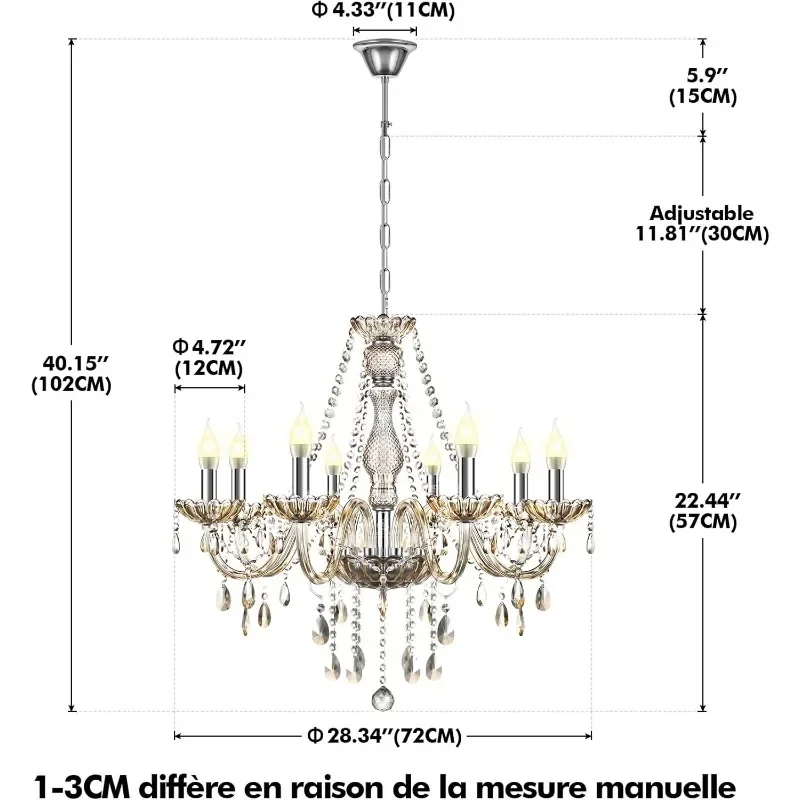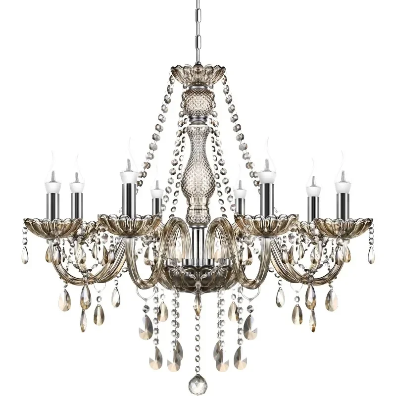 - 【Luxurious and Elegant Disign】The cognac crystal and sliver metal bulb base makes the chandelier more beautiful, and the quality is better than the clear chandelier, creates a modern classic atmosphere with hand-polished K5 crystal beads and metal shape