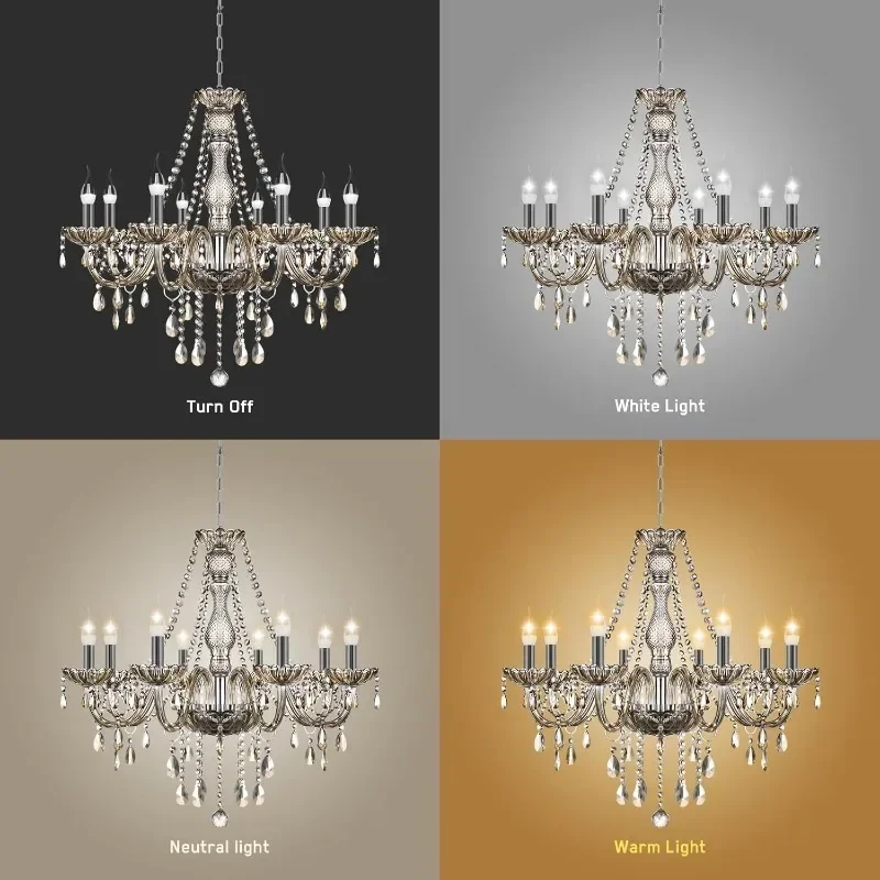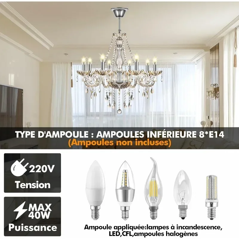 - 【Bulbs Requirement】This crystal ceiling lamp needs extra bulbs with E12 sockets (40W Max.). The bulbs can be incandescent, LED, CFL and halogen bulbs.Not include Blulbs
