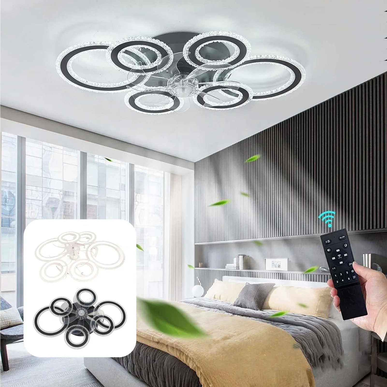 Ceiling Fan Light LED Nordic Modern Ceiling Fan Lamp 6 Rings Ceiling Fan Light for Bedroom Living Room Dining Room
