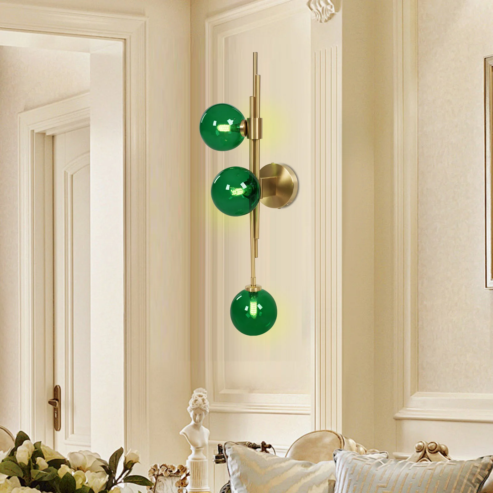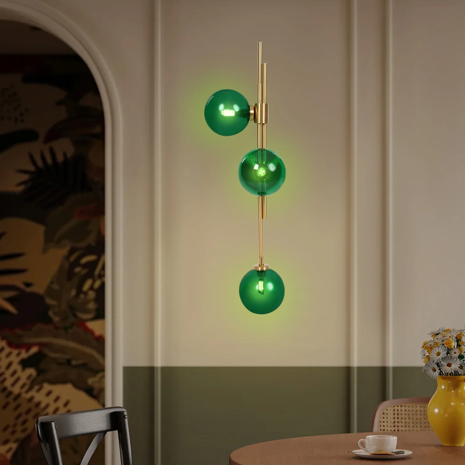 Stylish Appearance: The elegant round emerald green shade, layered stem, and round gold base make this wall lamp look elegant and charming, which can show your unique taste. Wherever it is installed, it is a sophisticated decoration for your home.
