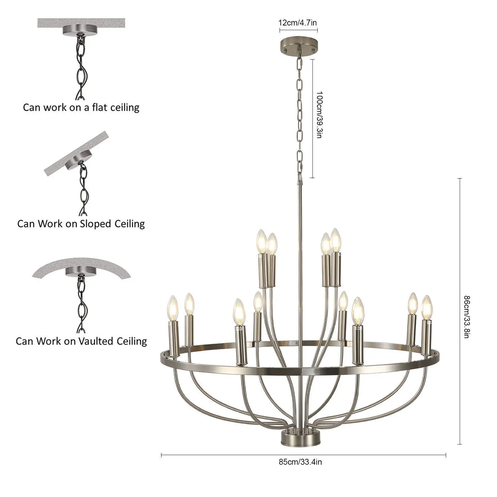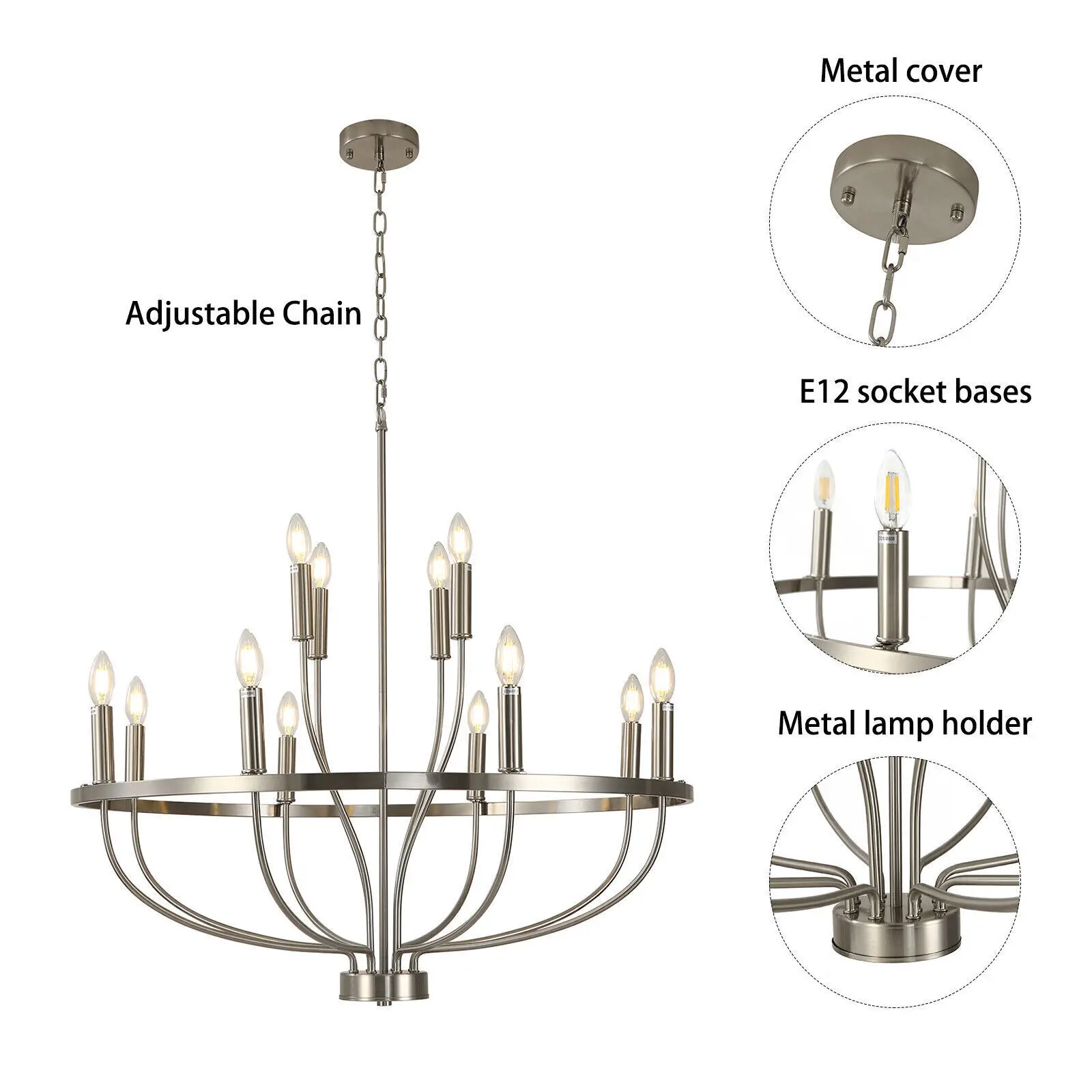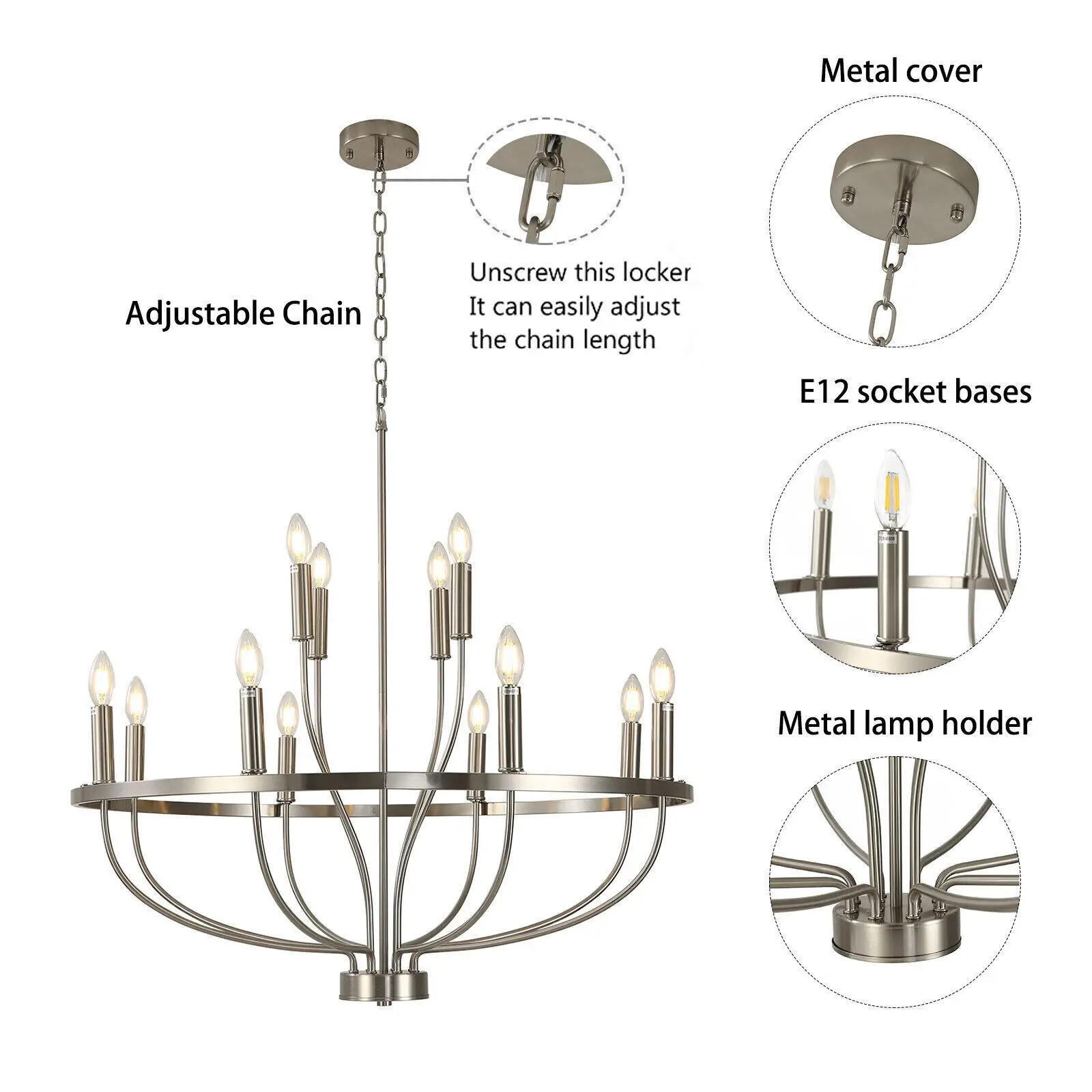 Bright&Soft Lighting: The open light can be equipped with 12 standard E12 bulbs to emanate a beautiful and luminous radiance and illuminate the entire area(269.1-430.6ft²).