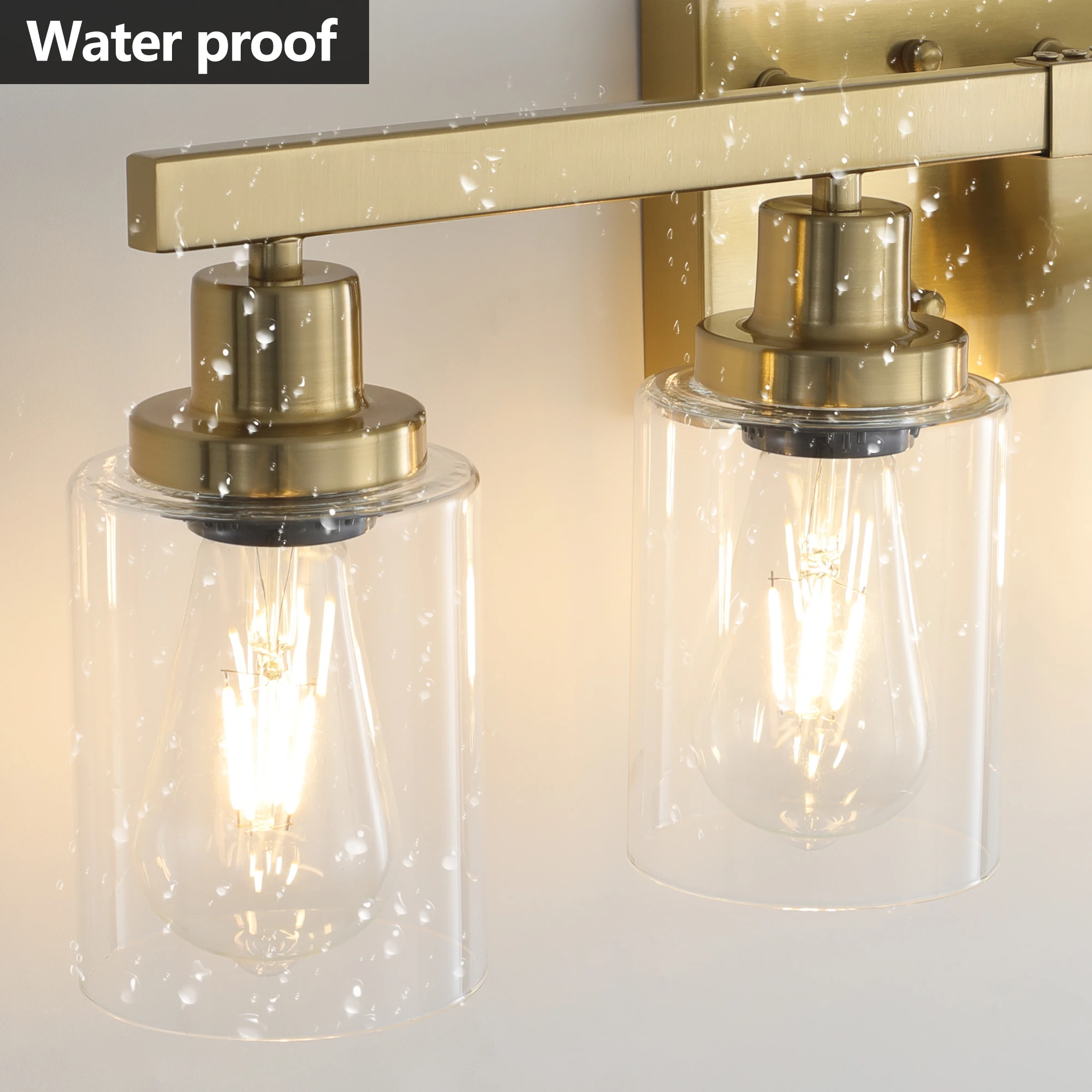 Golden 4 Lights Vanity Light with Clear Glass Lampshades, Modern Iron Metal Bathroom Wall Fixture for Mirror