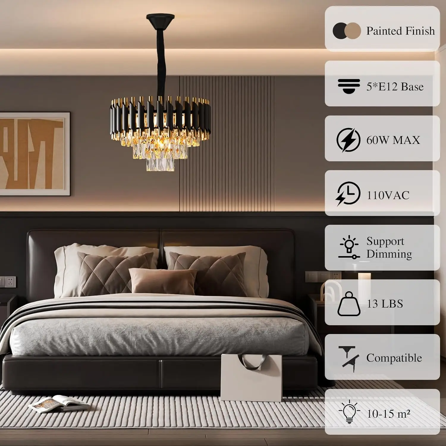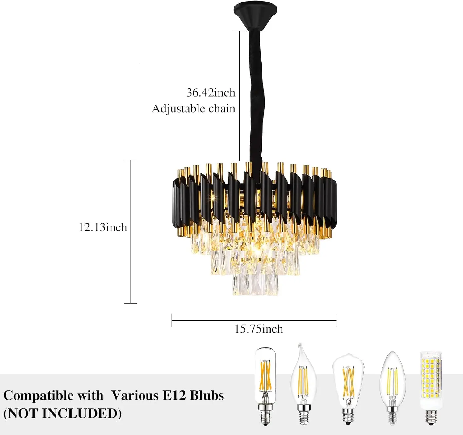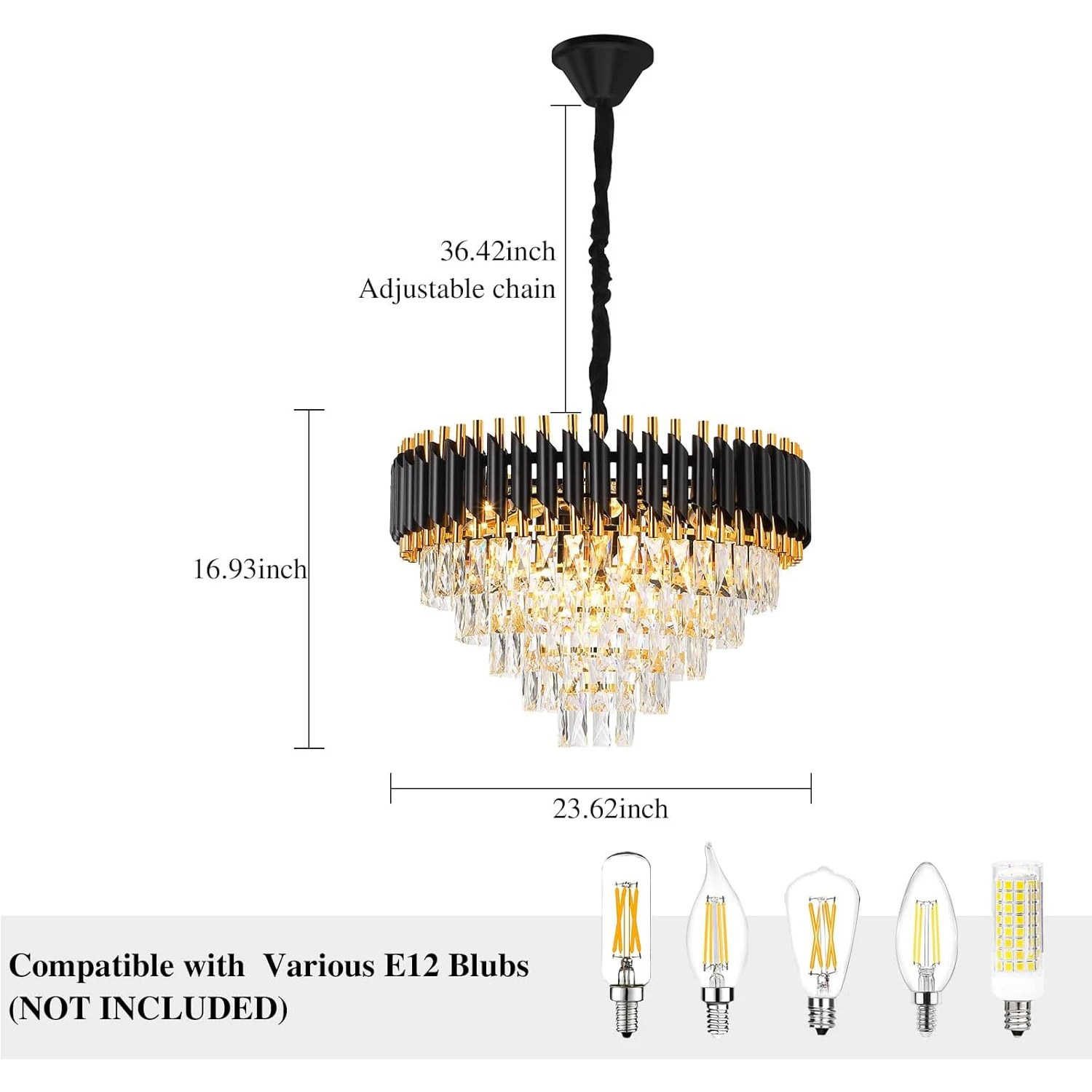 【Dimmable switch, bulb required】 Requires 10 x E12 bulbs (max. 60 Watt). This modern chandelier is also compatible with dimmable switches, supports LED, energy saving, halogen lamps, etc. Fully dimmable with a compatible dimmer switch to create the perfect lighting effect (bulbs and dimmer switch are not included).