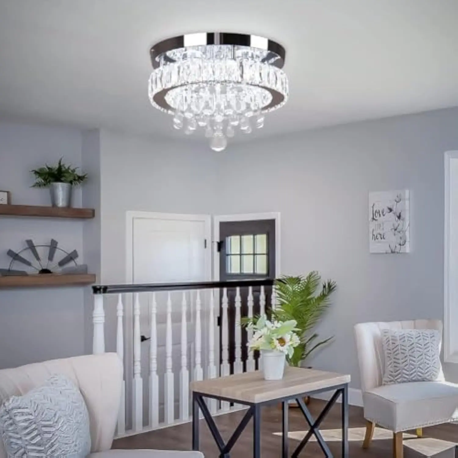 Easy to Install: Small chandelier need to Pre assembly, fix the base to the ceiling and hang the crystal on it. Flush mount ceiling light come with installation instructions and hardware