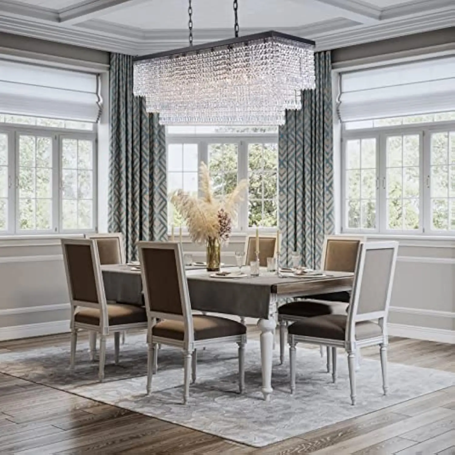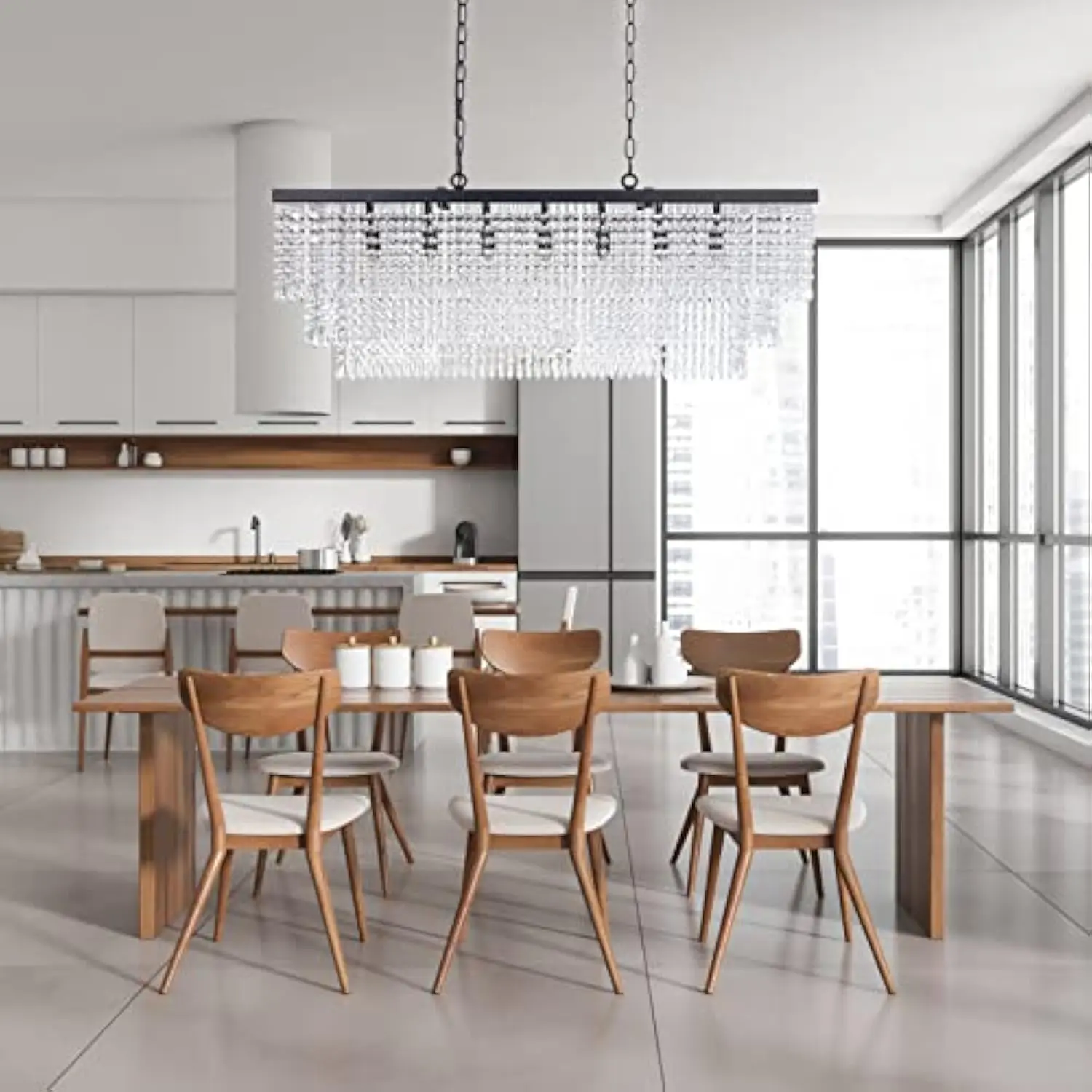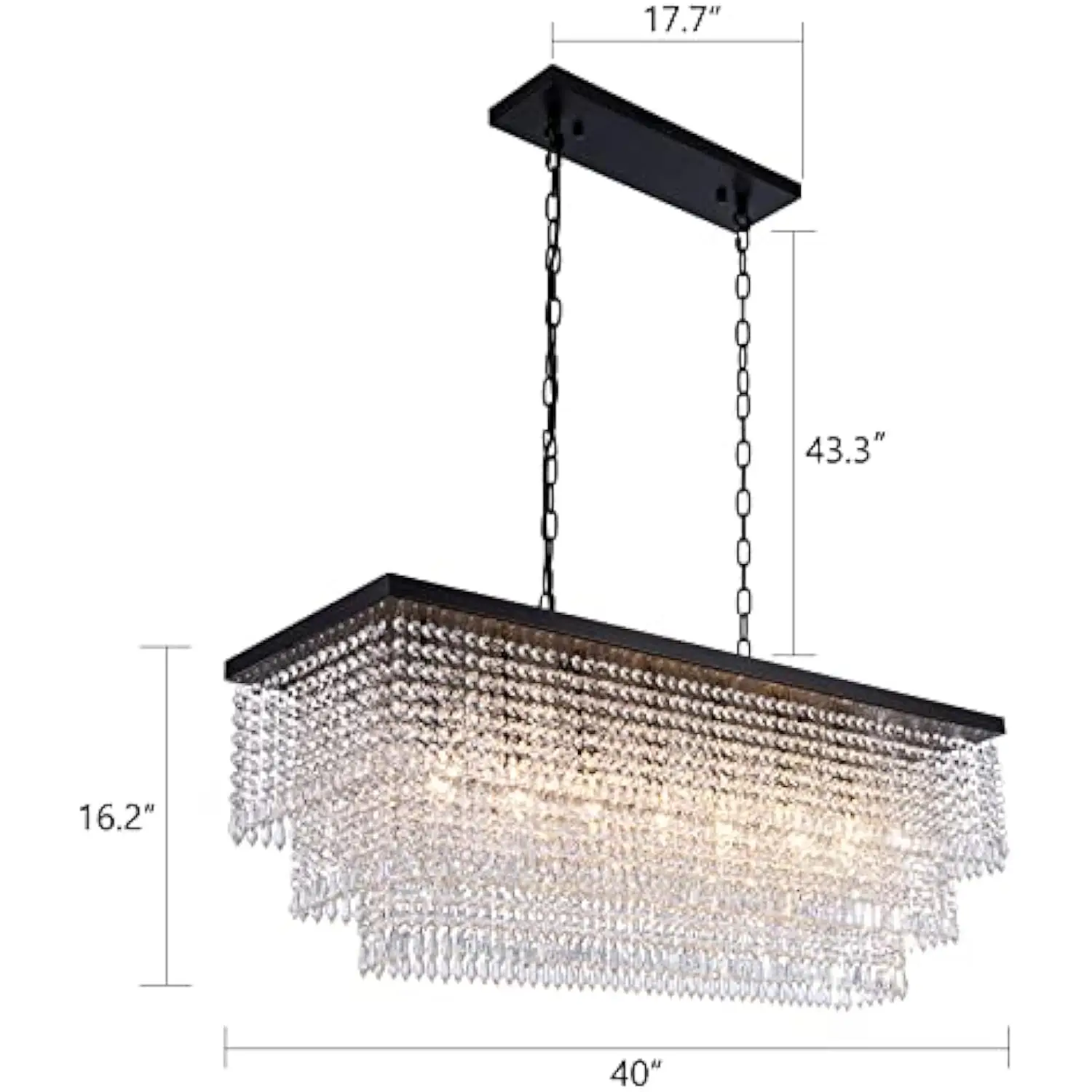 7 lights rectangle chandelier: combines classic and contemporary elements, the clear and simple black lines are equipped with high-quality k9 crystals to inject a dazzling brilliance into your space