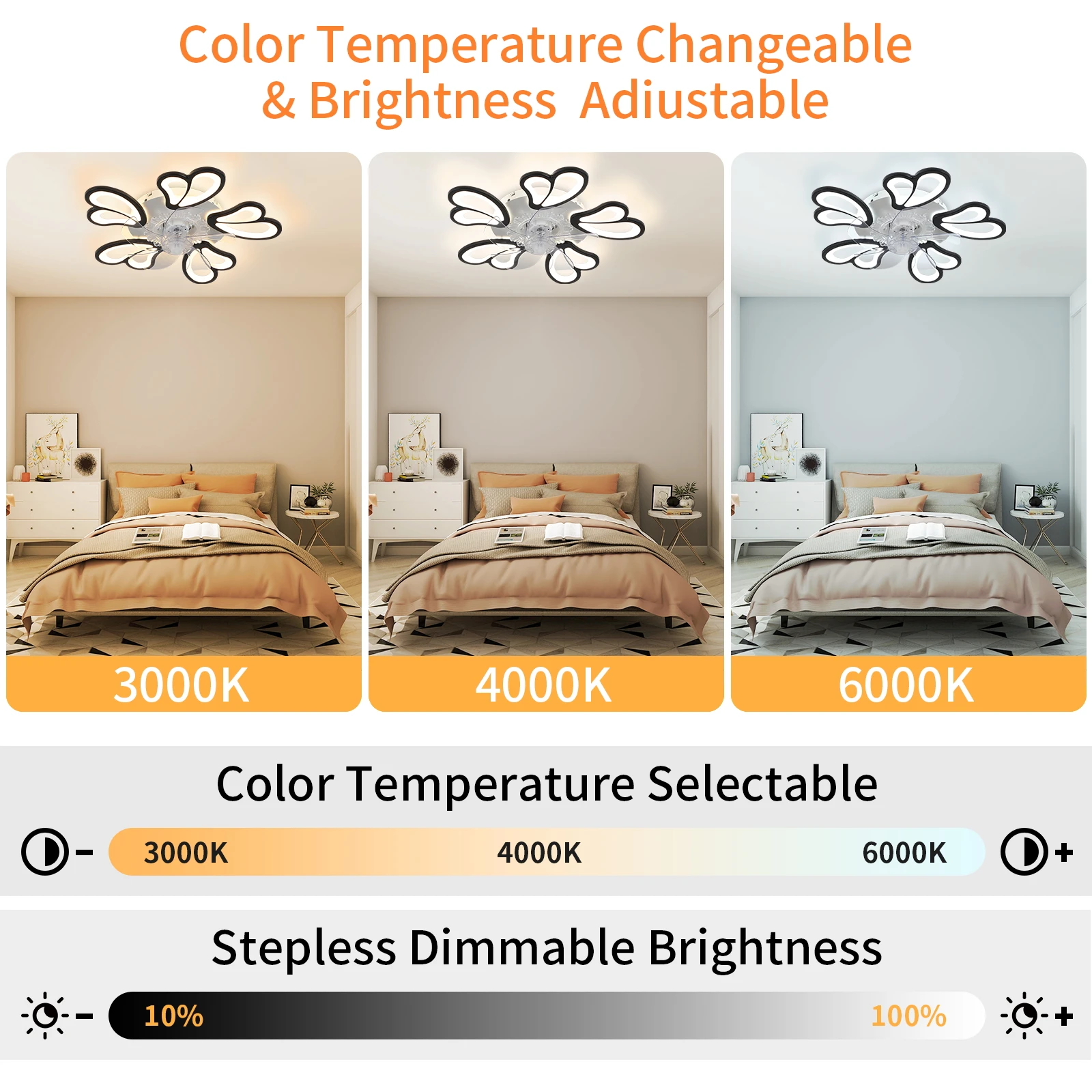 Modern Flush Mount Ceiling Fans with LED Lights and Remote, Dimmable Low Profile Ceiling Fan, Stepless Color TemperatureModern Flush Mount Ceiling Fans with LED Lights and Remote, Dimmable Low Profile Ceiling Fan, Stepless Color Temperature