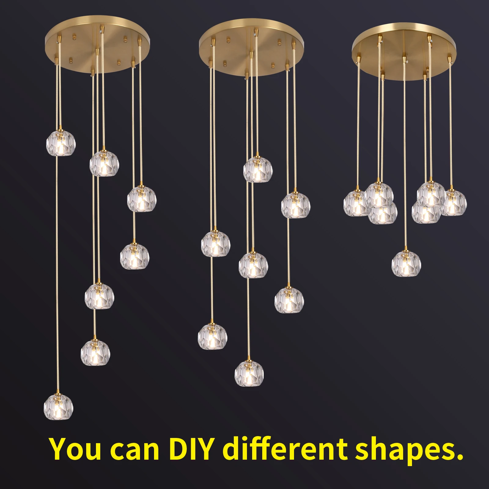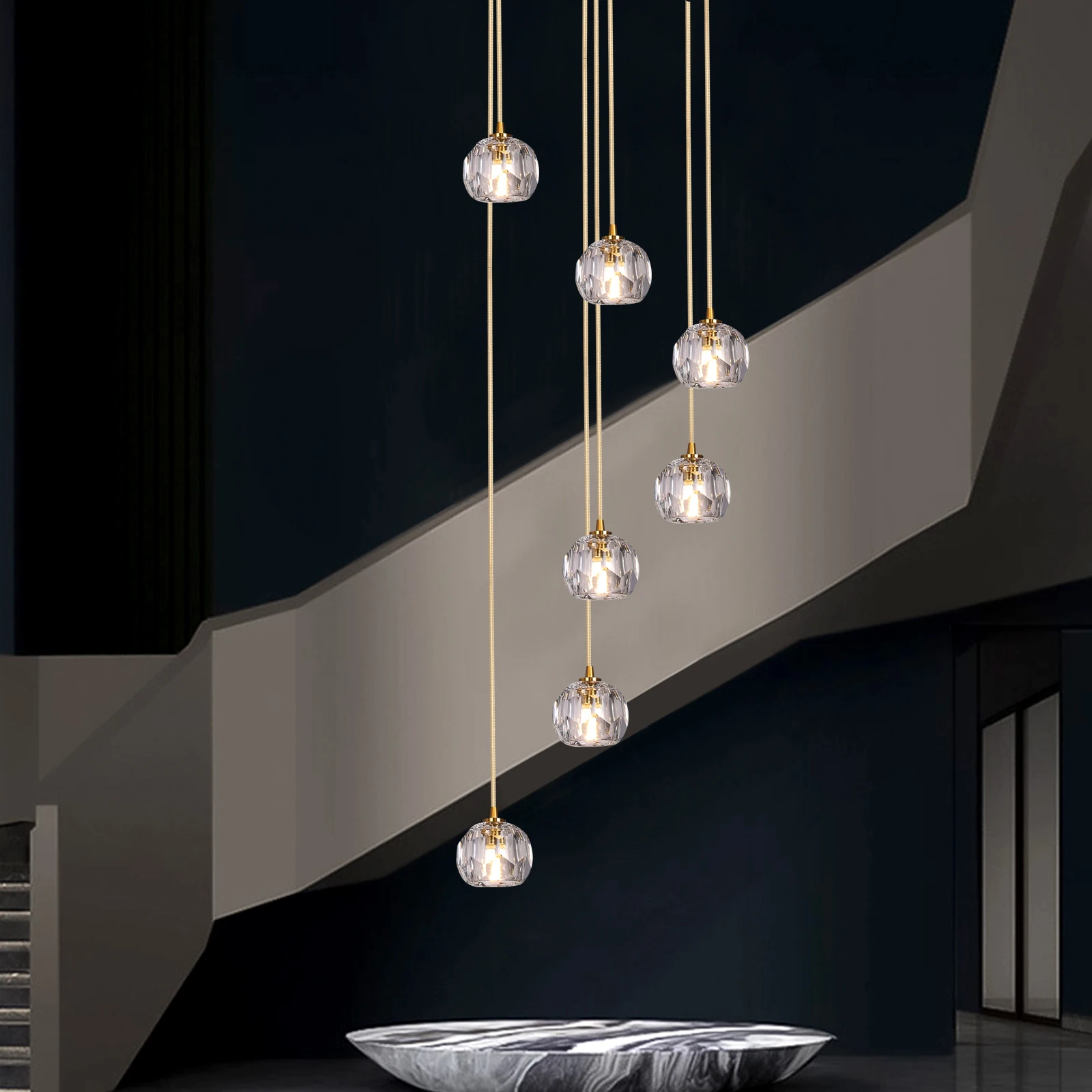 Modern Pendant Light Crystal Ball Cluster Led Chandelier Hanging Ceiling Lamp Kitchen Island Home Decor Corridor Lustre Fixtur