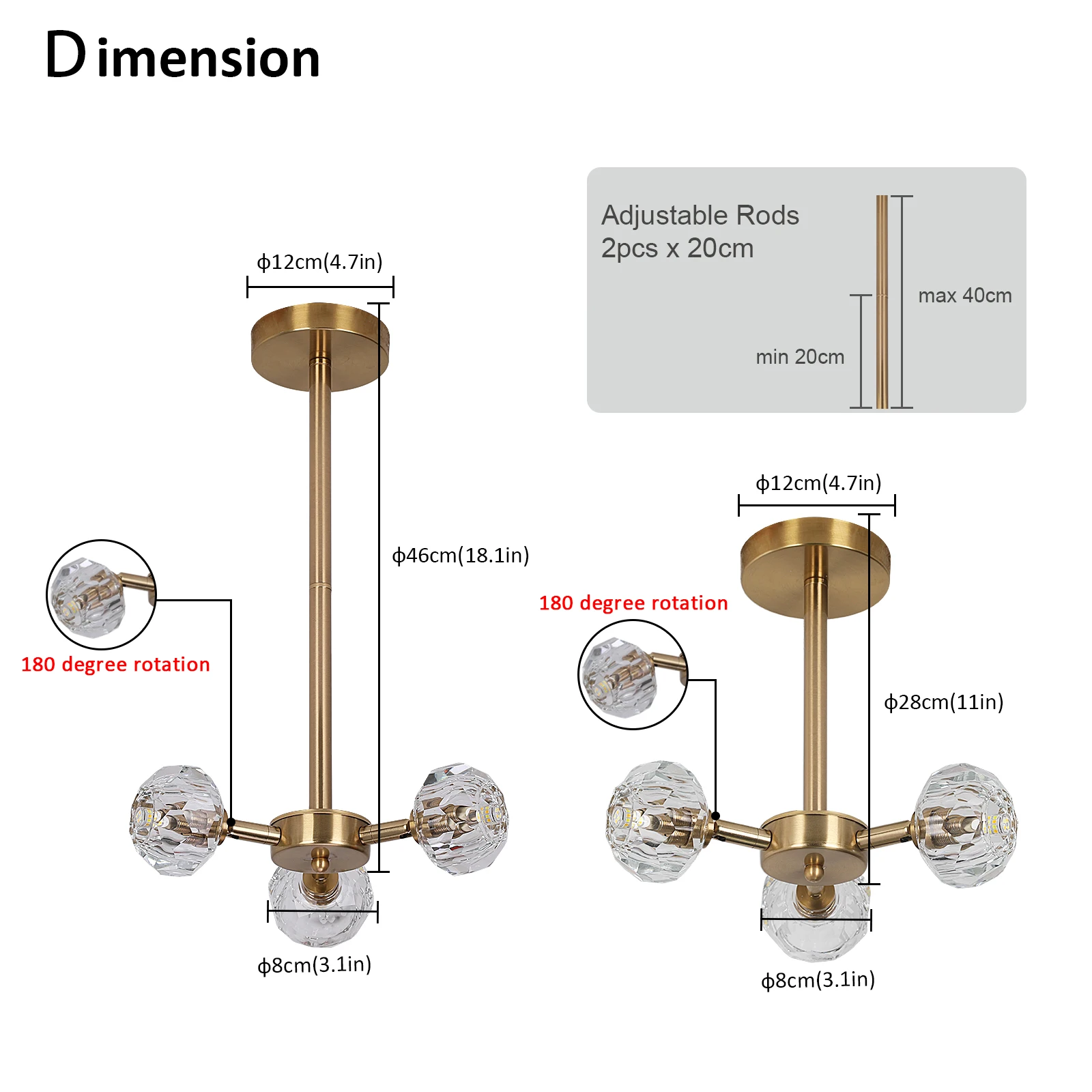 - Lamp length: adjustable