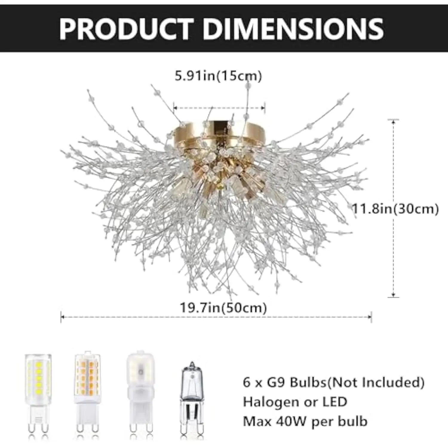 Dimmable & bulbs requirement: this sputnik firework ceiling light fixture needs 6 x g9 bulbs, max 40w per bulb. It’s compatible with led or halogen bulb type. (bulbs not included). The dimmable feature is for dimmable bulbs & switch. You can create different bulbs with various ambience
