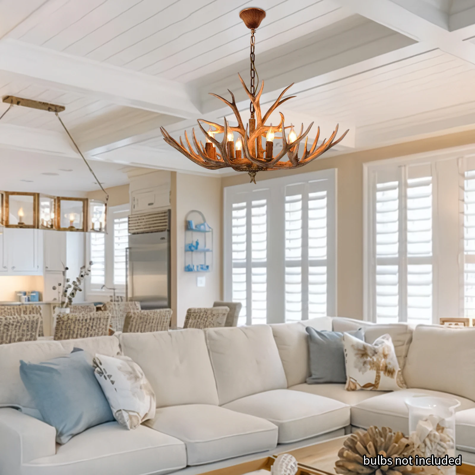 The resin antler chandelier is not only an excellent tool to light up your room but also embellish your room with unique and rustic elements. It combines beauty and practicality, adding a touch of decor to your bedroom. You can install six E12 bulbs yourself such as incandescent and LED bulbs to create different lighting atmospheres and express your unique taste.