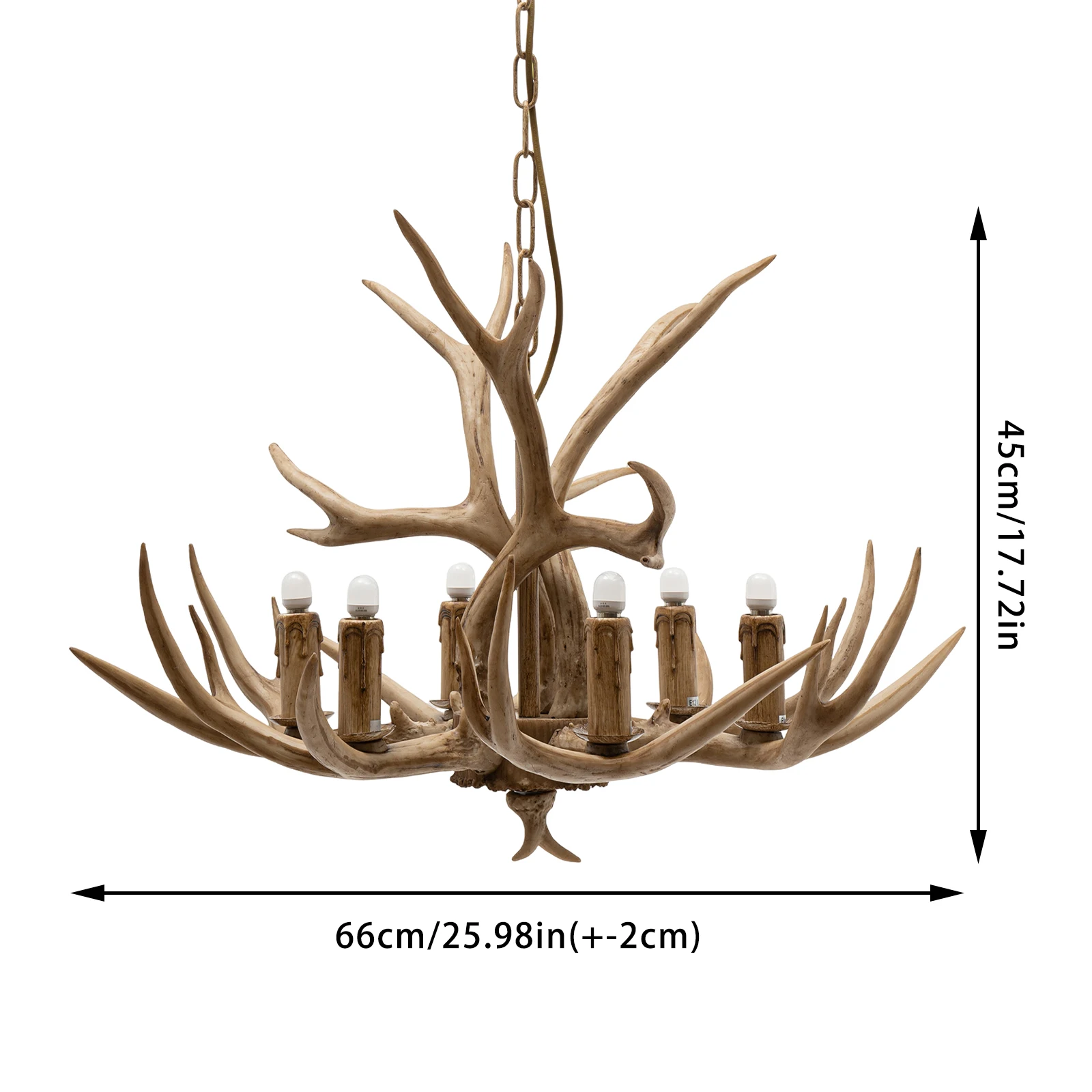 Customizable Lighting: Our resin antler chandelier features 6*E12 lamp holders, allowing for easy installation of various light sources (LED, halogen, CFL, Incandescent) that suit your preferences.