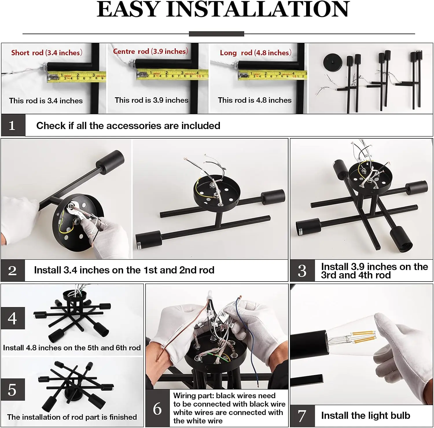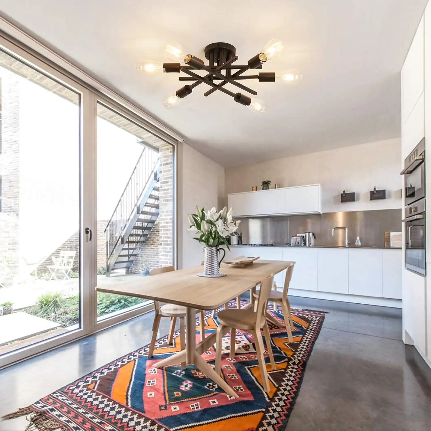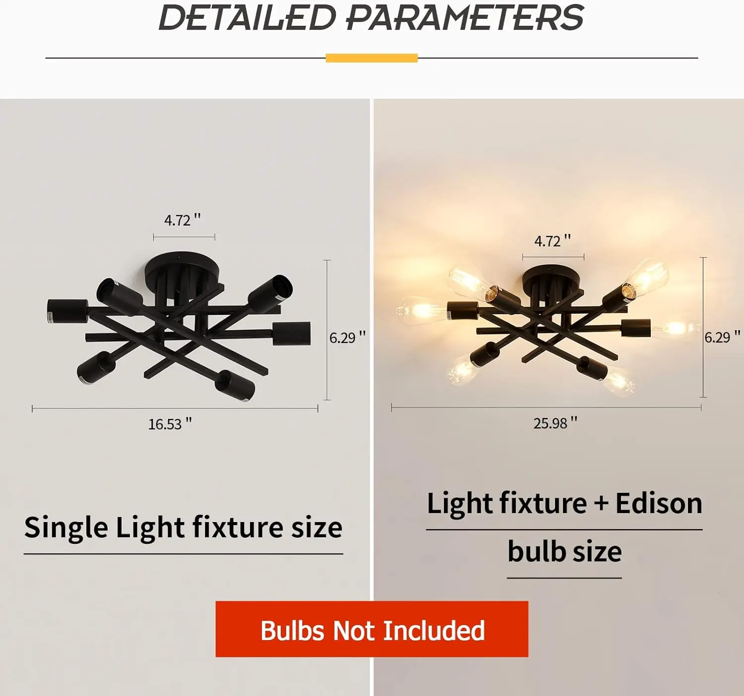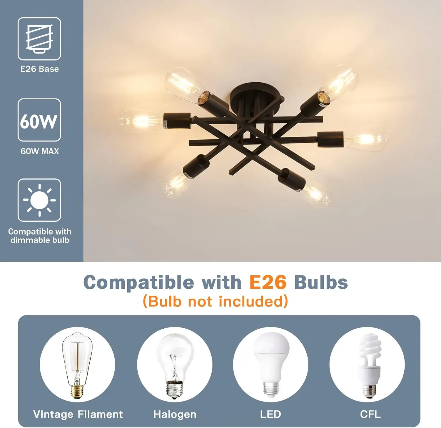 Semi Flush Mount Modern Ceiling Light Fixture, 6 Lights Black Vintage Matte Sputnik Chandelier Ceiling LampSemi Flush Mount Modern Ceiling Light Fixture, 6 Lights Black Vintage Matte Sputnik Chandelier Ceiling Lamp