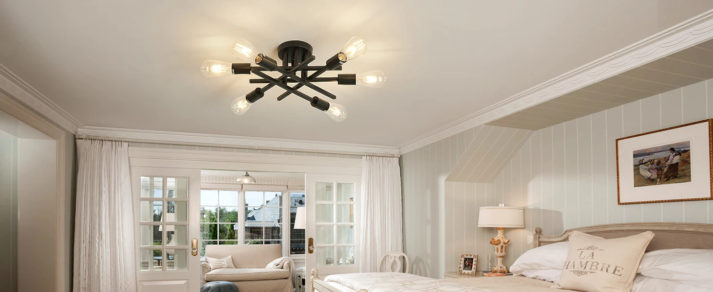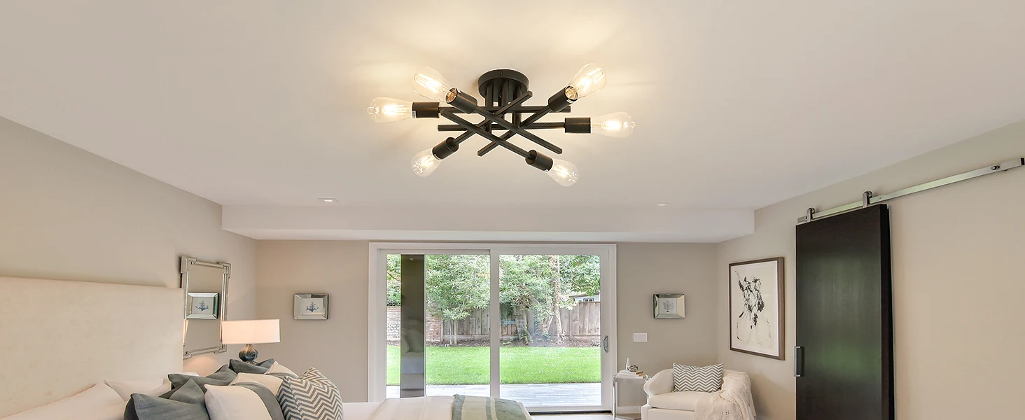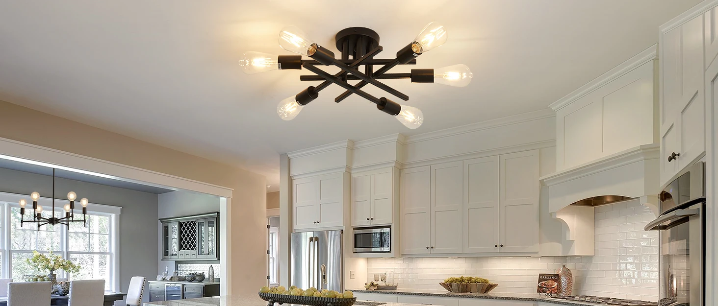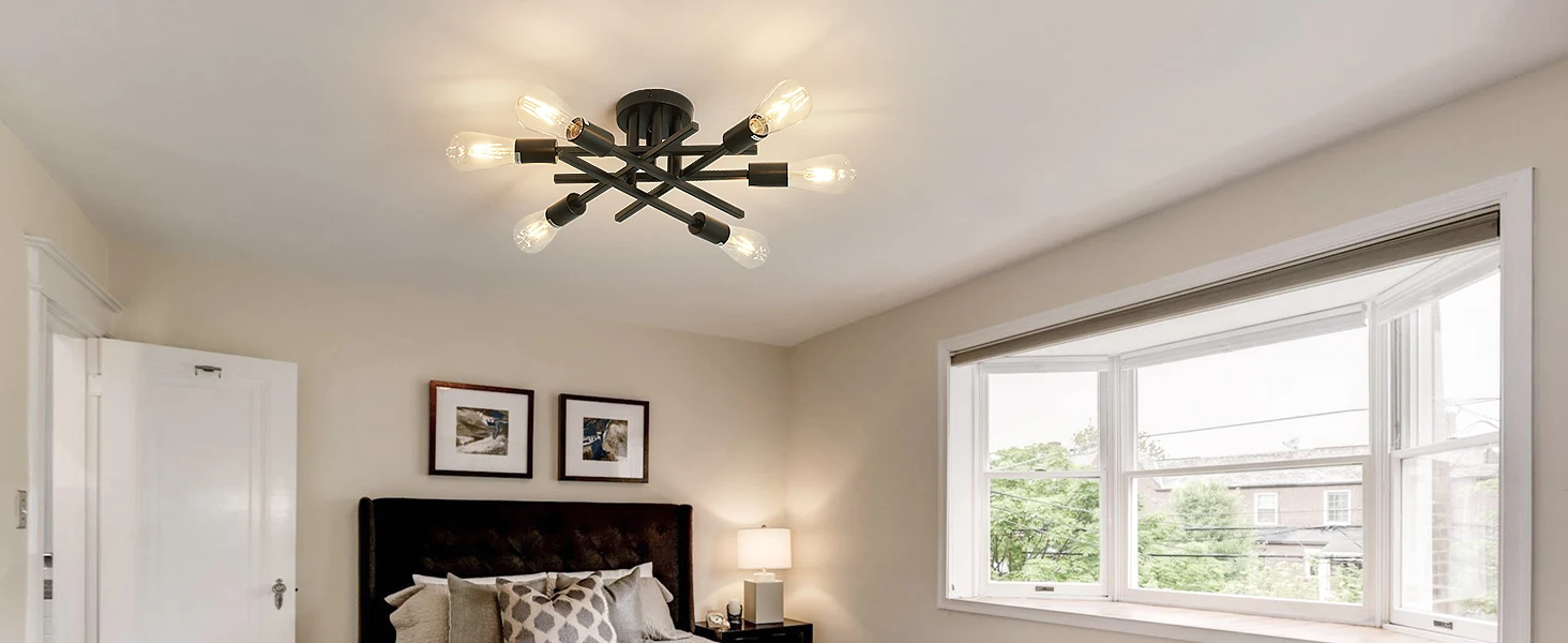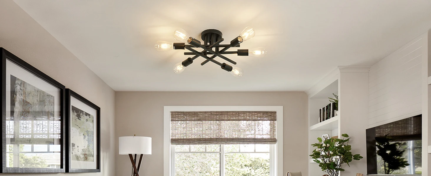 Semi Flush Mount Modern Ceiling Light Fixture, 6 Lights Black Vintage Matte Sputnik Chandelier Ceiling LampSemi Flush Mount Modern Ceiling Light Fixture, 6 Lights Black Vintage Matte Sputnik Chandelier Ceiling Lamp