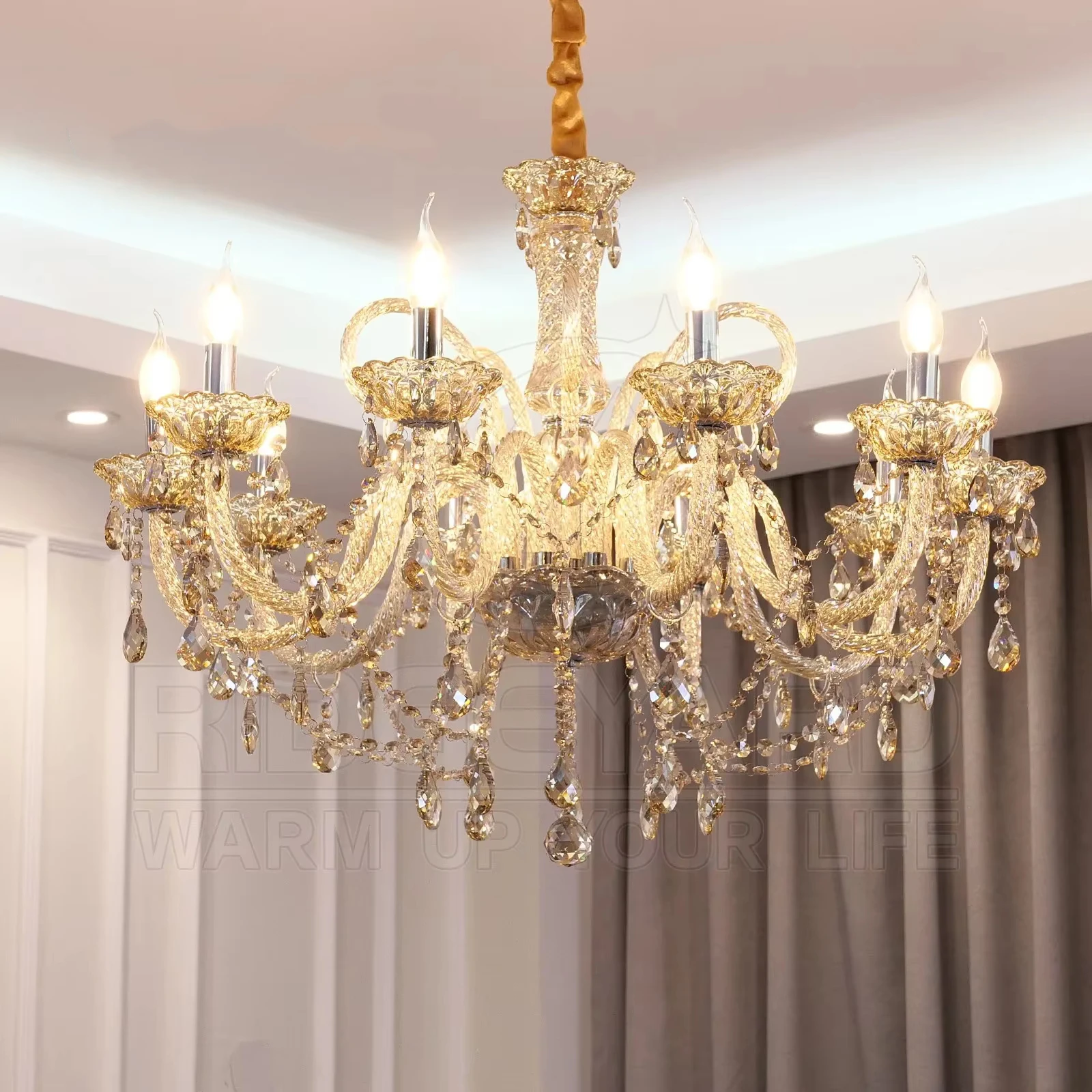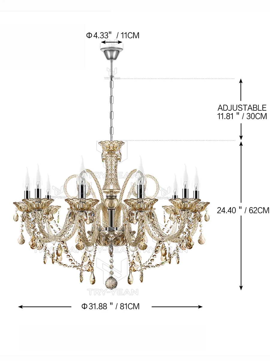 Vintage Crystal 10 Arm Cognac Chandelier Classic K9 Crystals Drop Pendant LightingVintage Crystal 10 Arm Cognac Chandelier Classic K9 Crystals Drop Pendant Lighting