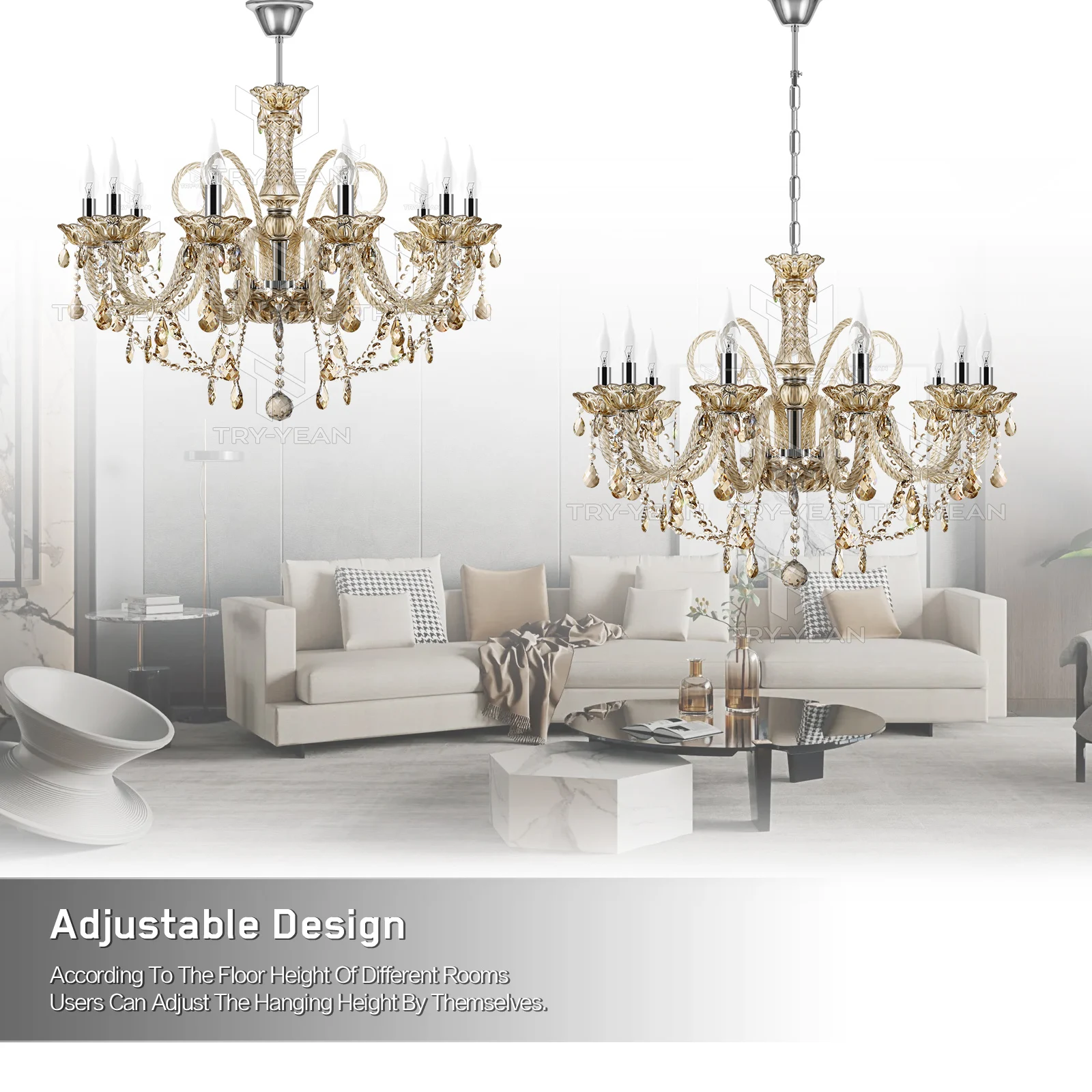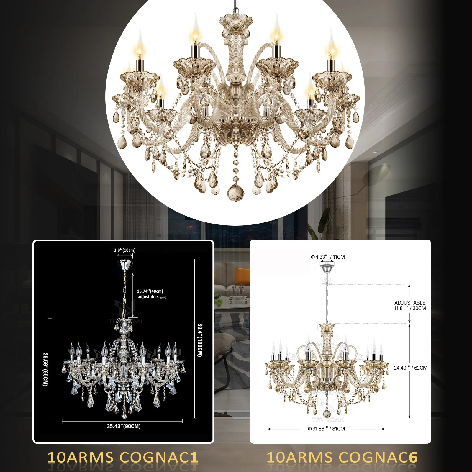 TRY-YEAN 10 Arms Cognac6 Chandelier
