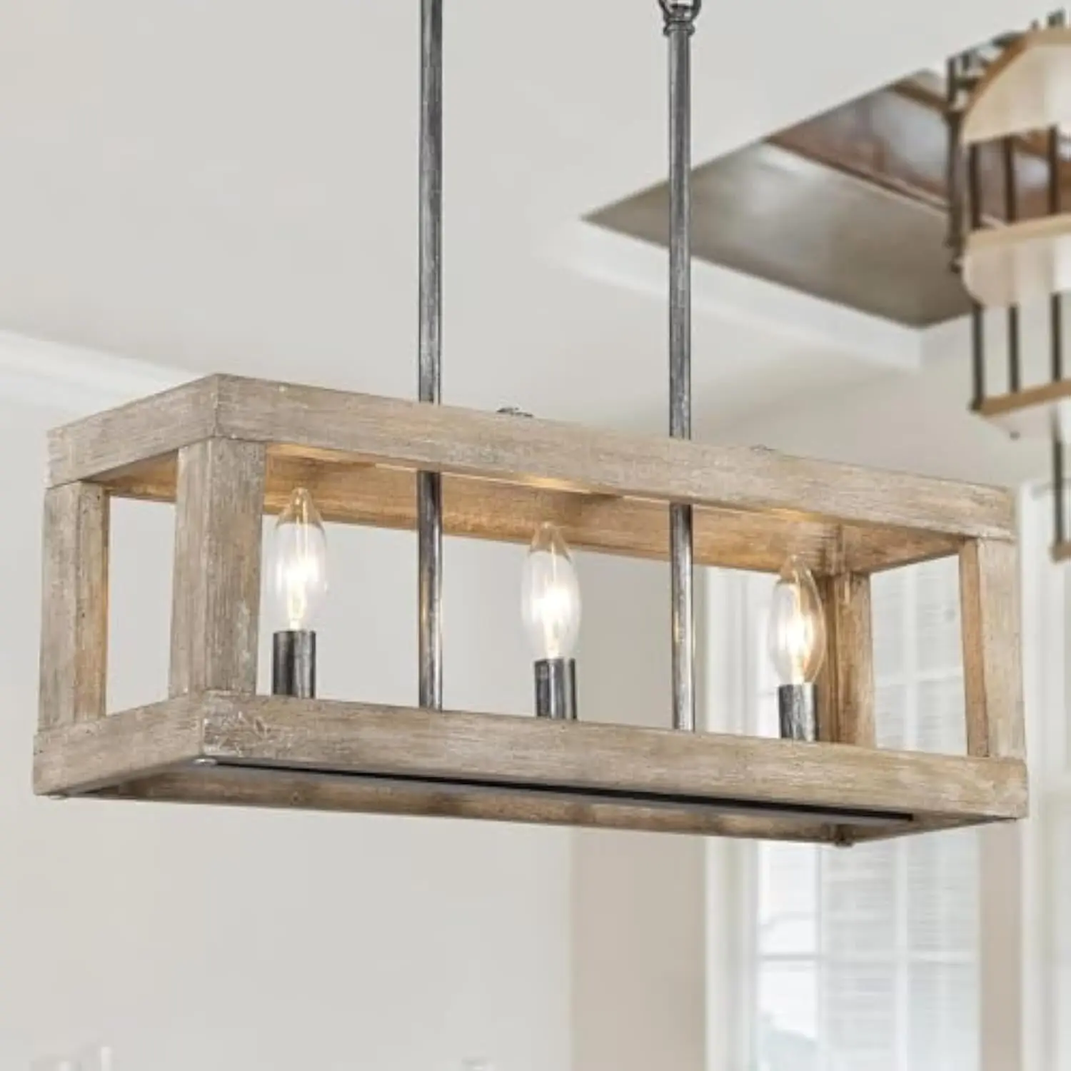 Wood Chandelier, 3 Light Farmhouse Chandelier Light Fixtures, Rectangle Island LightingWood Chandelier, 3 Light Farmhouse Chandelier Light Fixtures, Rectangle Island Lighting