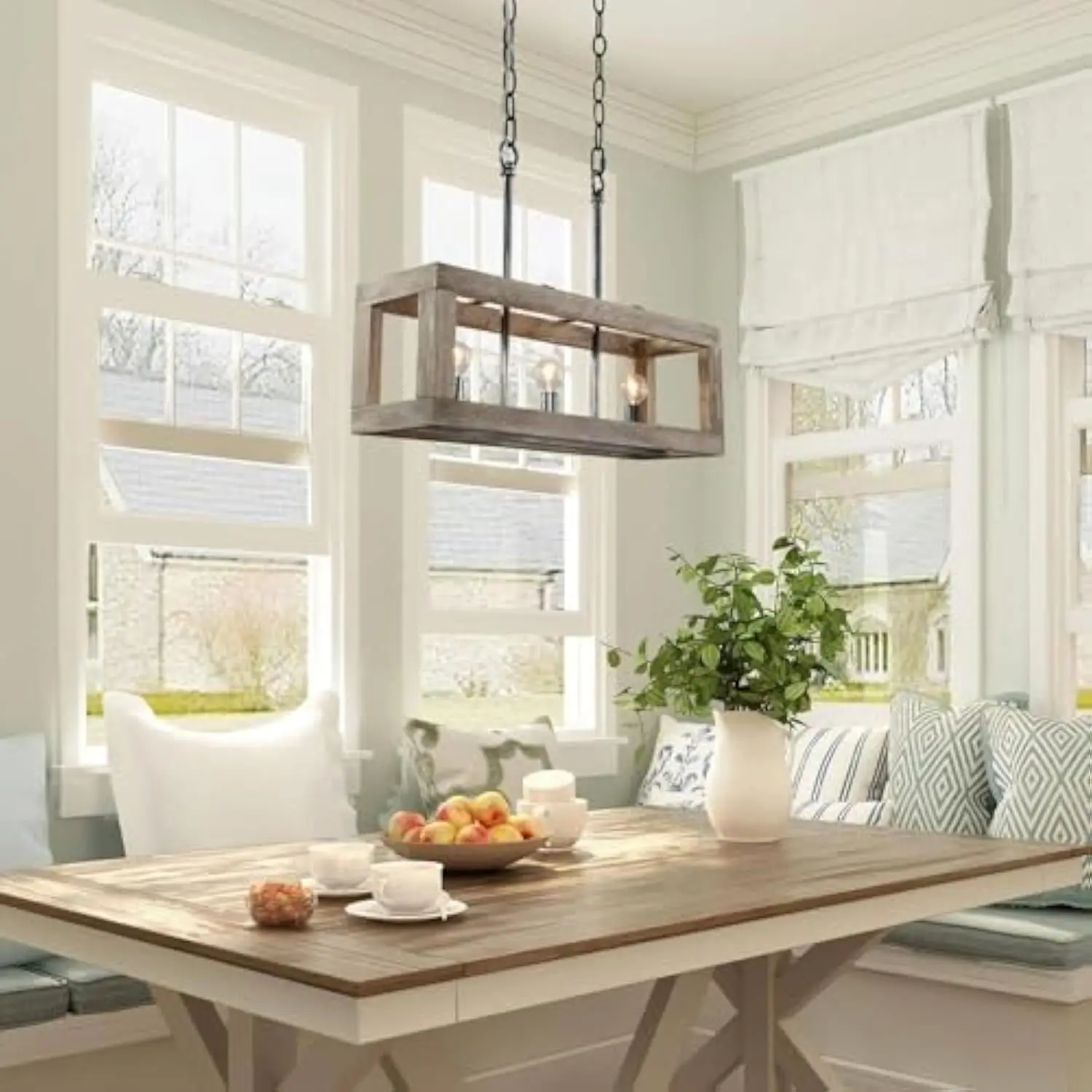 Wood Chandelier, 3 Light Farmhouse Chandelier Light Fixtures, Rectangle Island Lighting